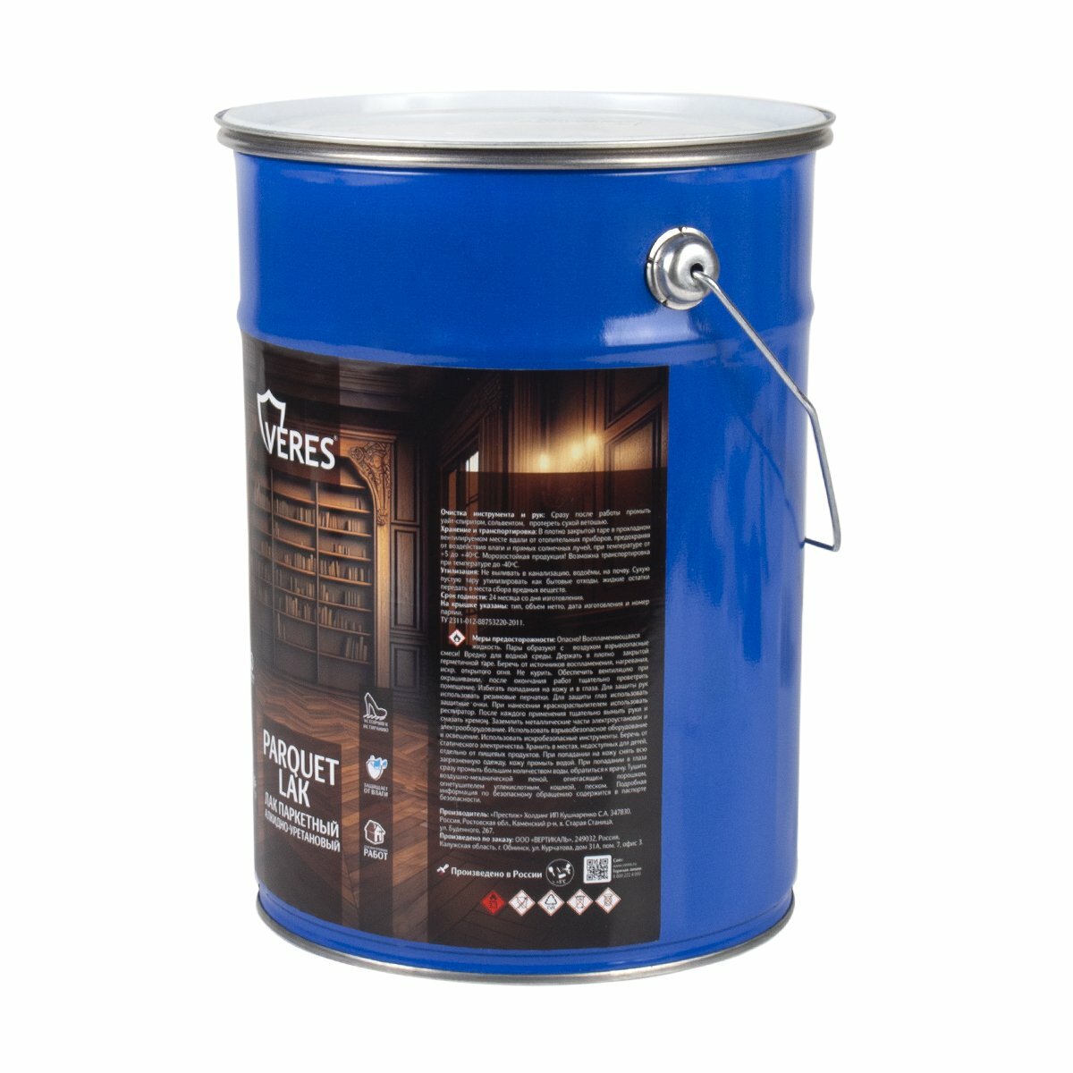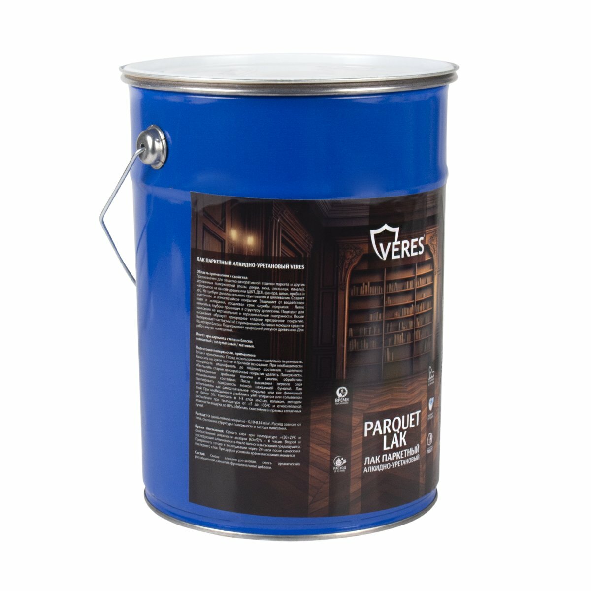 Лак паркетный Veres, алкидно-уретановый, бесцветный, полуматовый, 10 л, 1шт, жестяное ведро