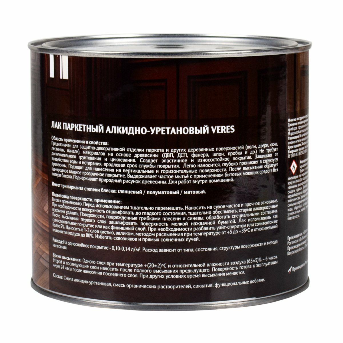 Лак паркетный Veres, алкидно-уретановый, бесцветный, полуматовый, 1,9 л