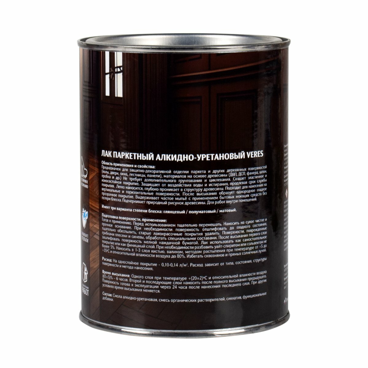 Купить Лак паркетный Veres, алкидно-уретановый, глянцевый, бесцветный, 0,9 л, 1шт, жестяная банка