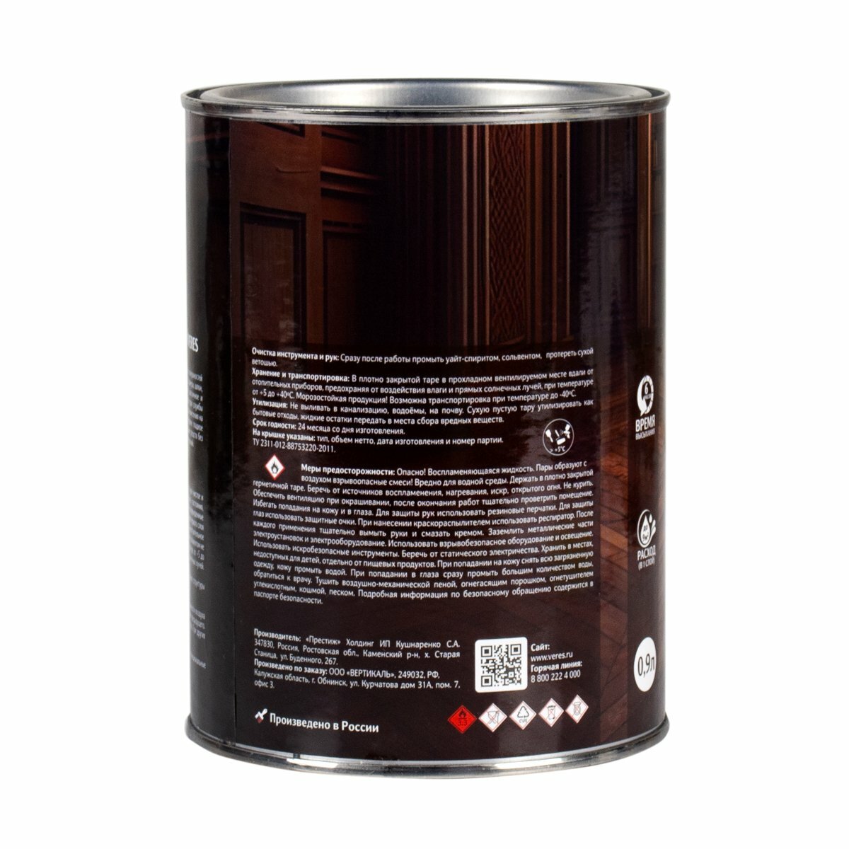 Лак паркетный Veres, алкидно-уретановый, бесцветный, полуматовый, 0,9 л
