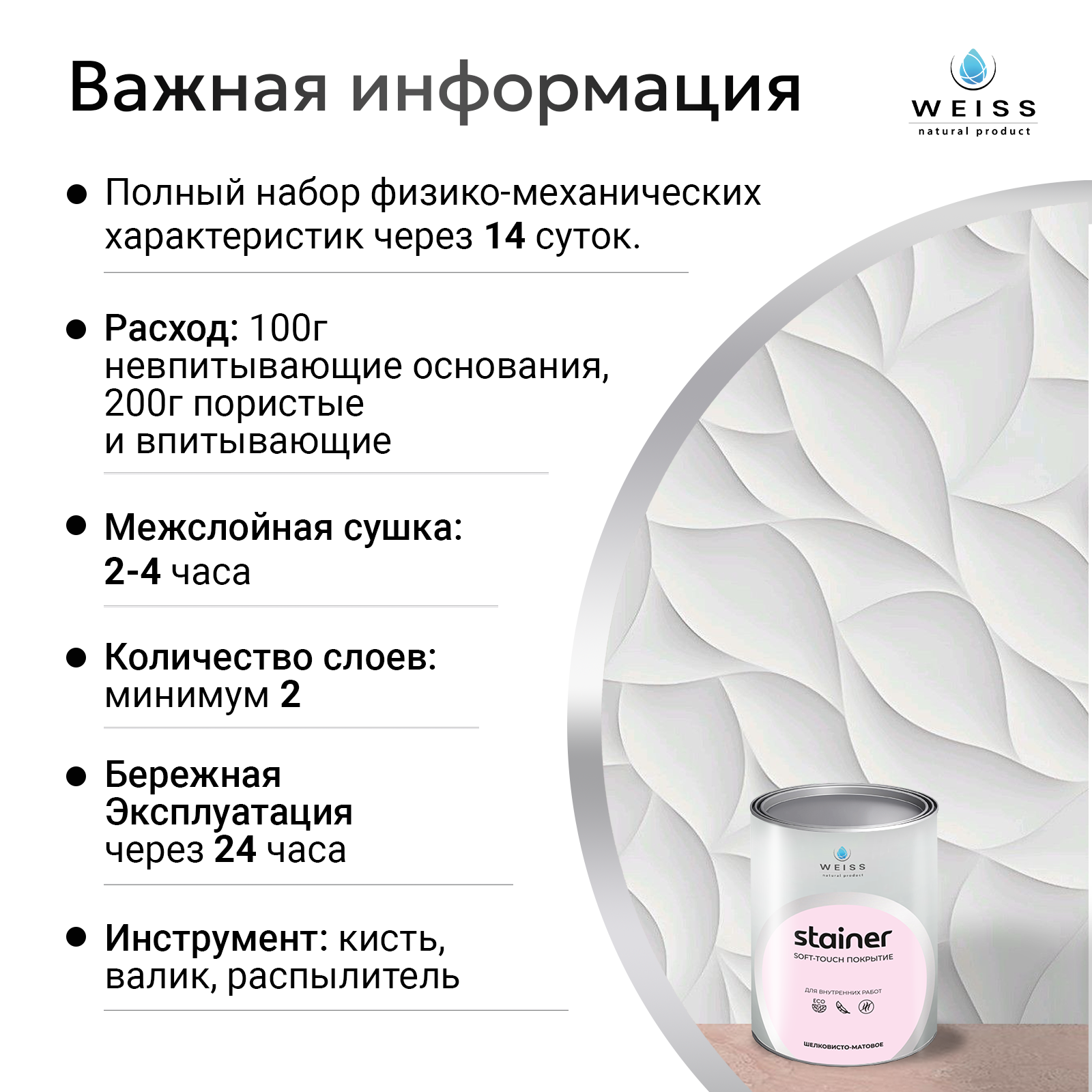Лак для мебели и стен, полиуретановый, матовый соф-тач, soft-touch, Weiss natural product, бесцветный 0.5л интересное: