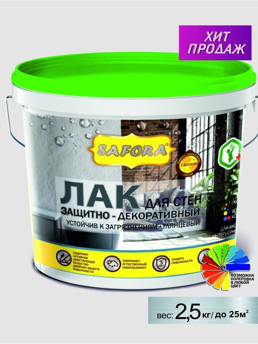 Лак для стен SAFORA для внутренних работ, акриловый, глянцевый, прозрачный, 2,5 кг интересное: