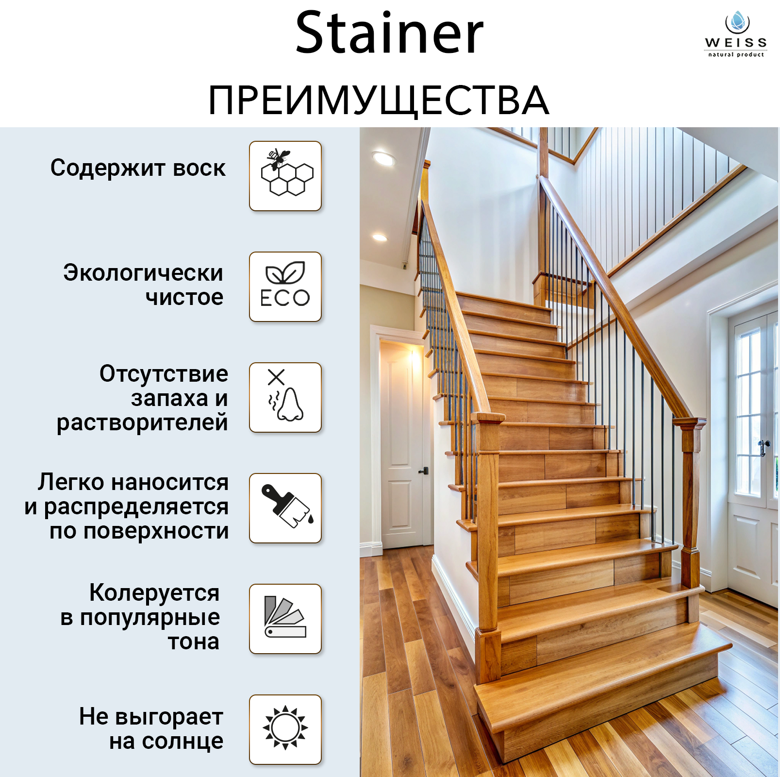 Лак паркетный Weiss Natural Product, для разных видов дерева, без запаха, самовыравнивающийся