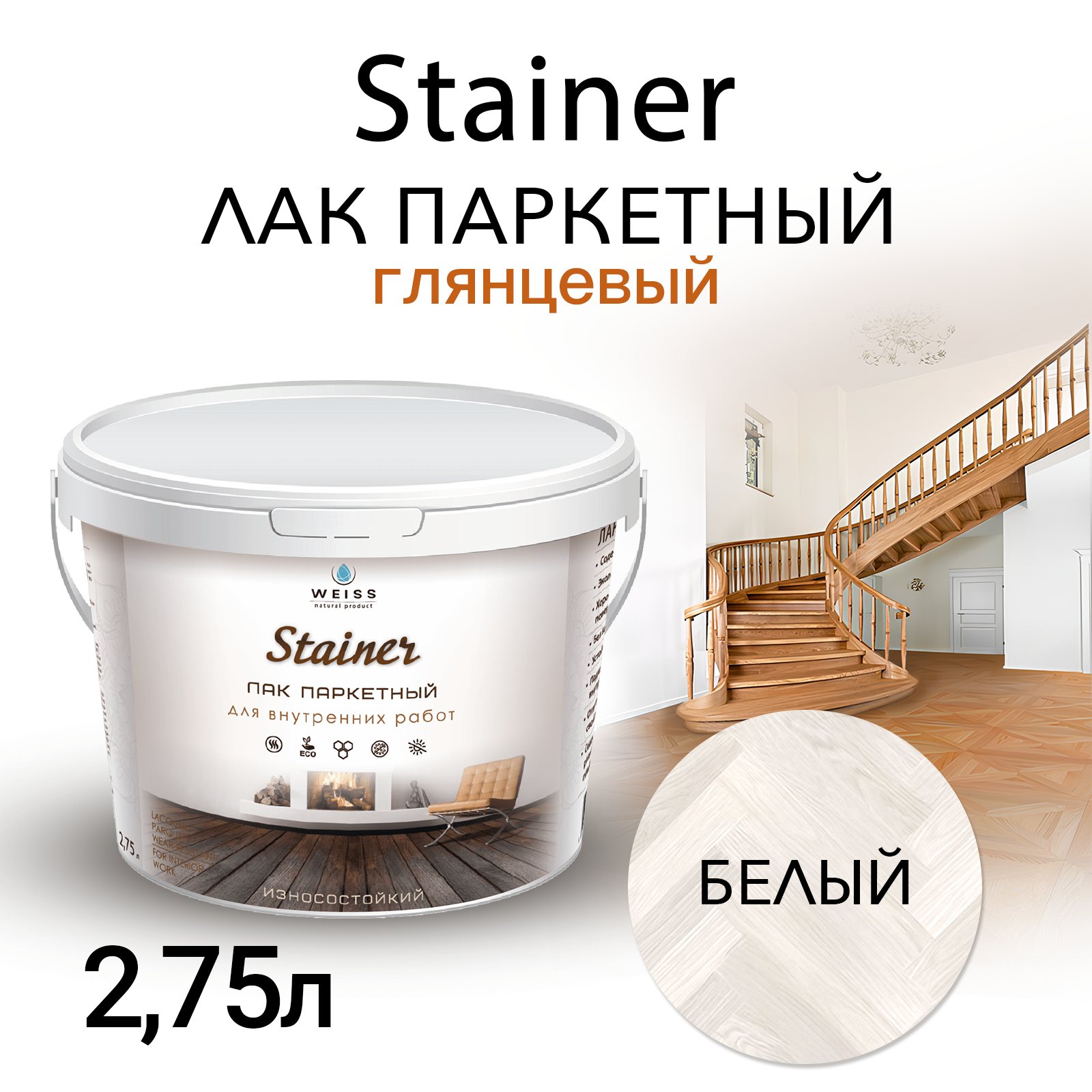Лак паркетный Weiss Natural Product, Ral 9012, глянцевый, без запаха, 2.75 л