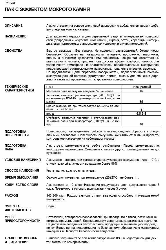 БОР Лак для камня с мокрым эффектом, акриловый, 2,3 кг интересное:
