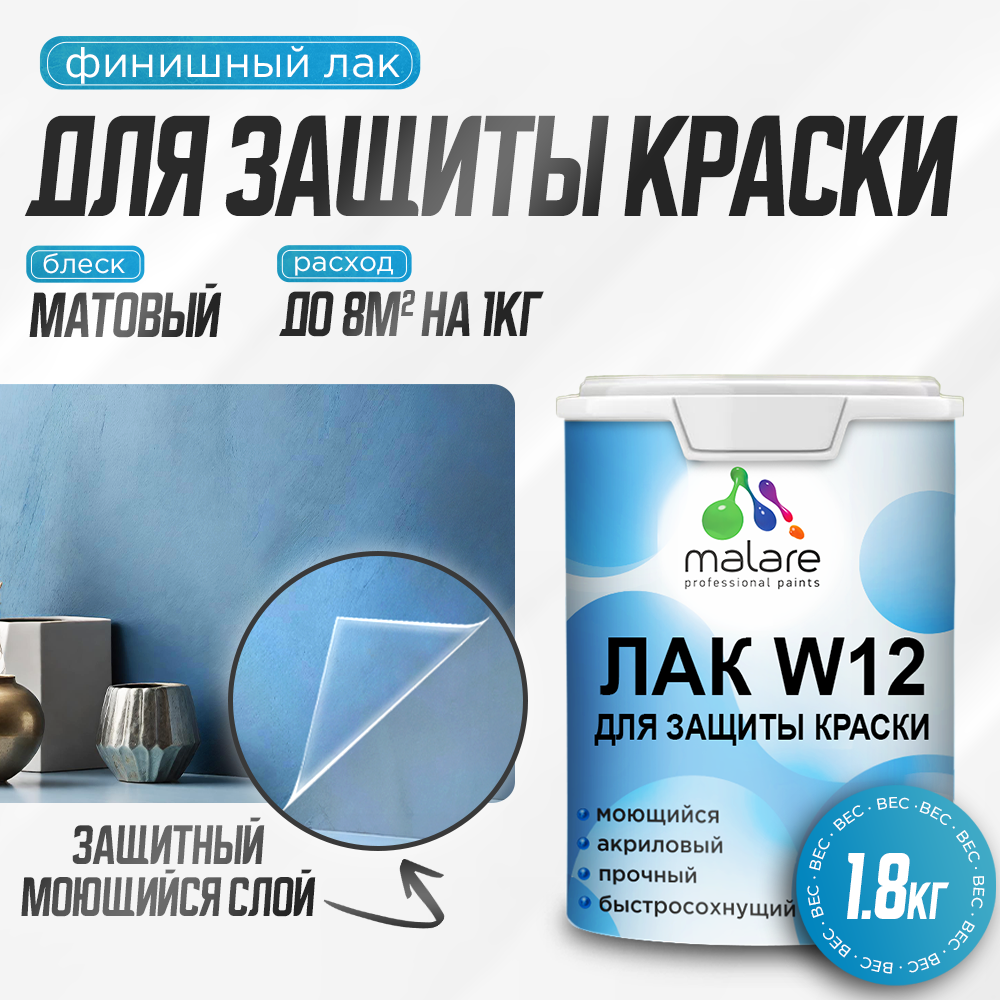 Лак для защиты акриловых красок Malare моющийся универсальный быстросохнущий экологичный, полуглянцевый, 1,8 кг