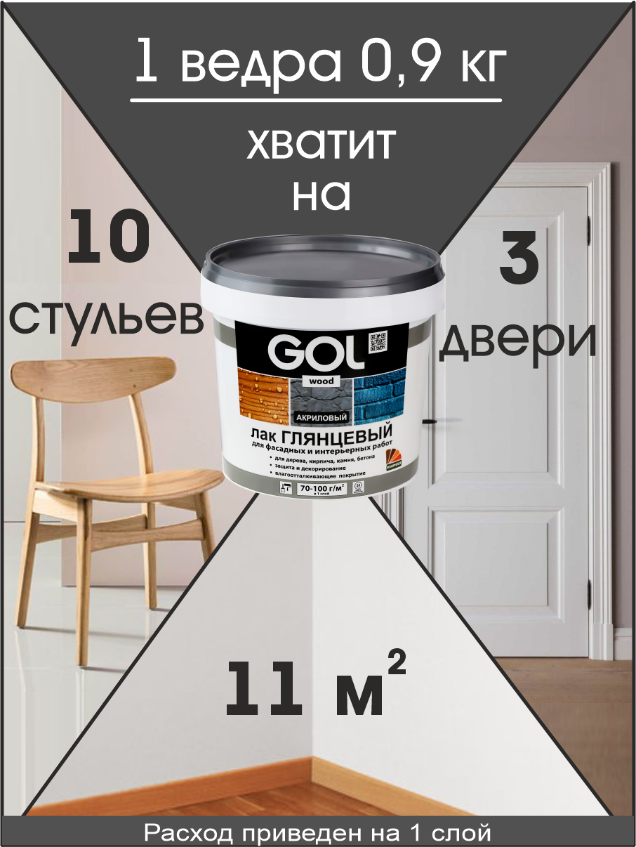 Лак акриловый глянцевый GOLwood для дерева, камня, кирпича, бетона 0,9 кг интересное:
