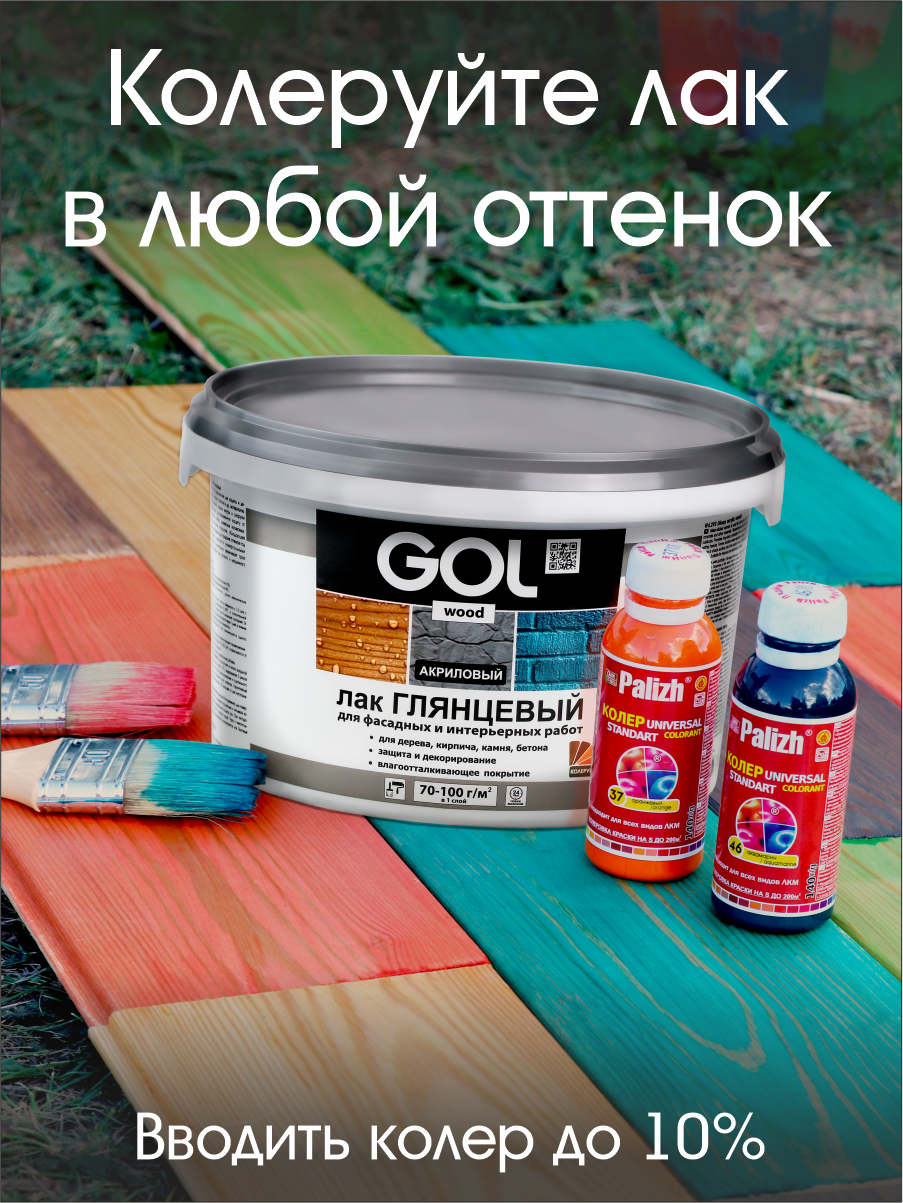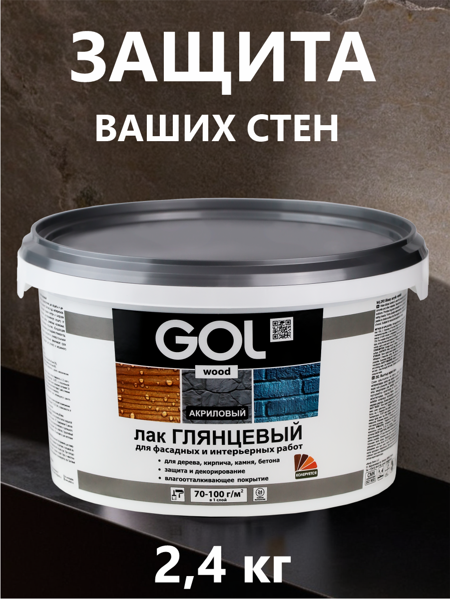 Лак акриловый глянцевый GOLwood для дерева, камня, кирпича, бетона 2,4 кг интересное: