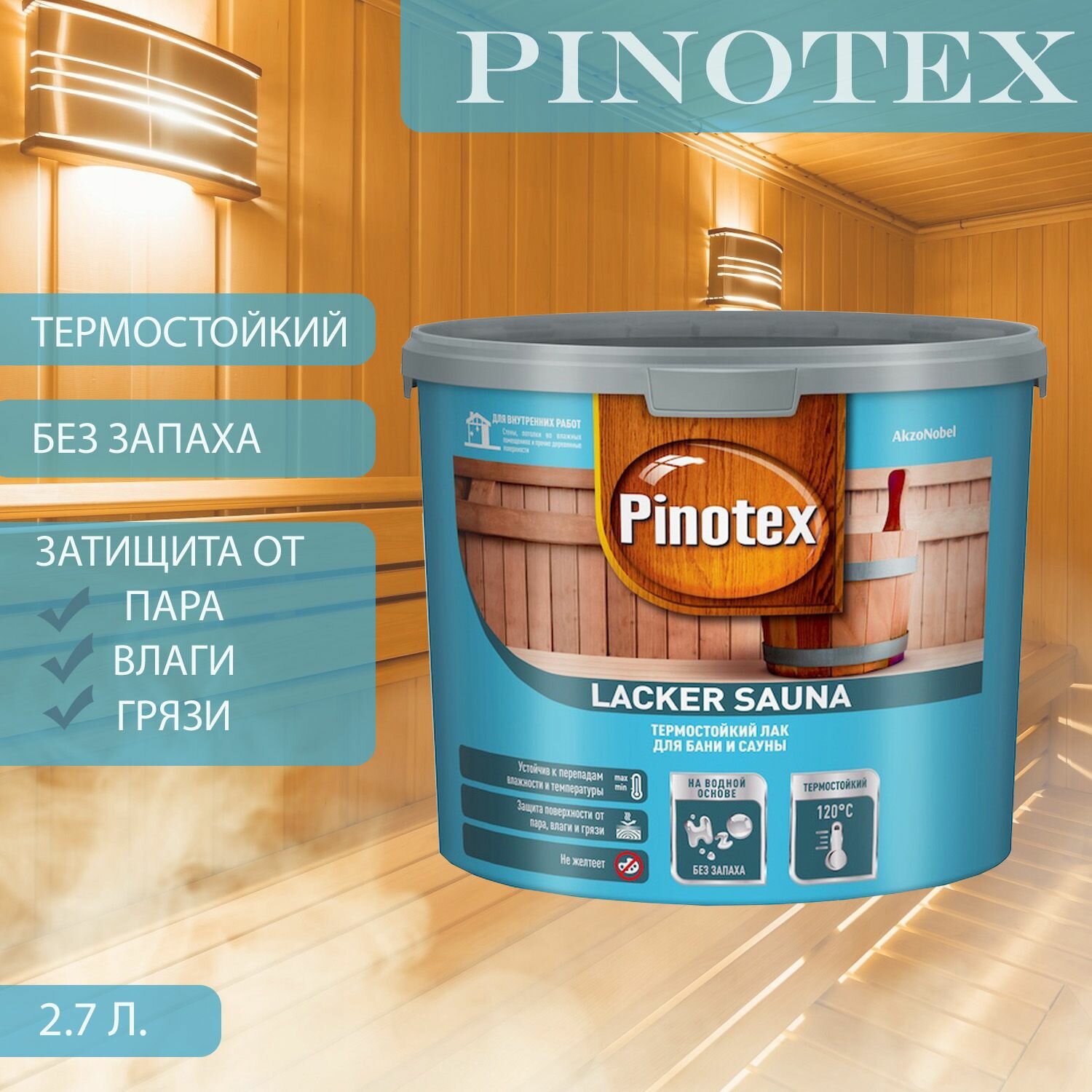 Купить Лак для бань и саун на водной основе Pinotex Lacker Sauna 20 полуматовый 2,7 л