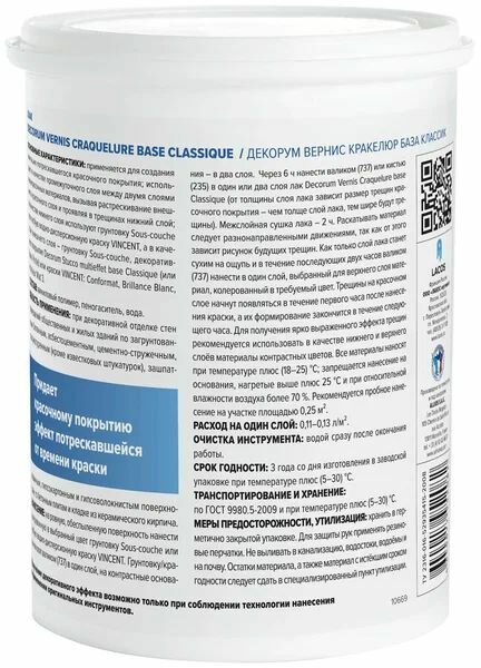 Лак VINCENT DECORUM VERNIS CRAQUELURE BASE CLASSIQUE имитация потрескавшегося покрытия 1л интересное: