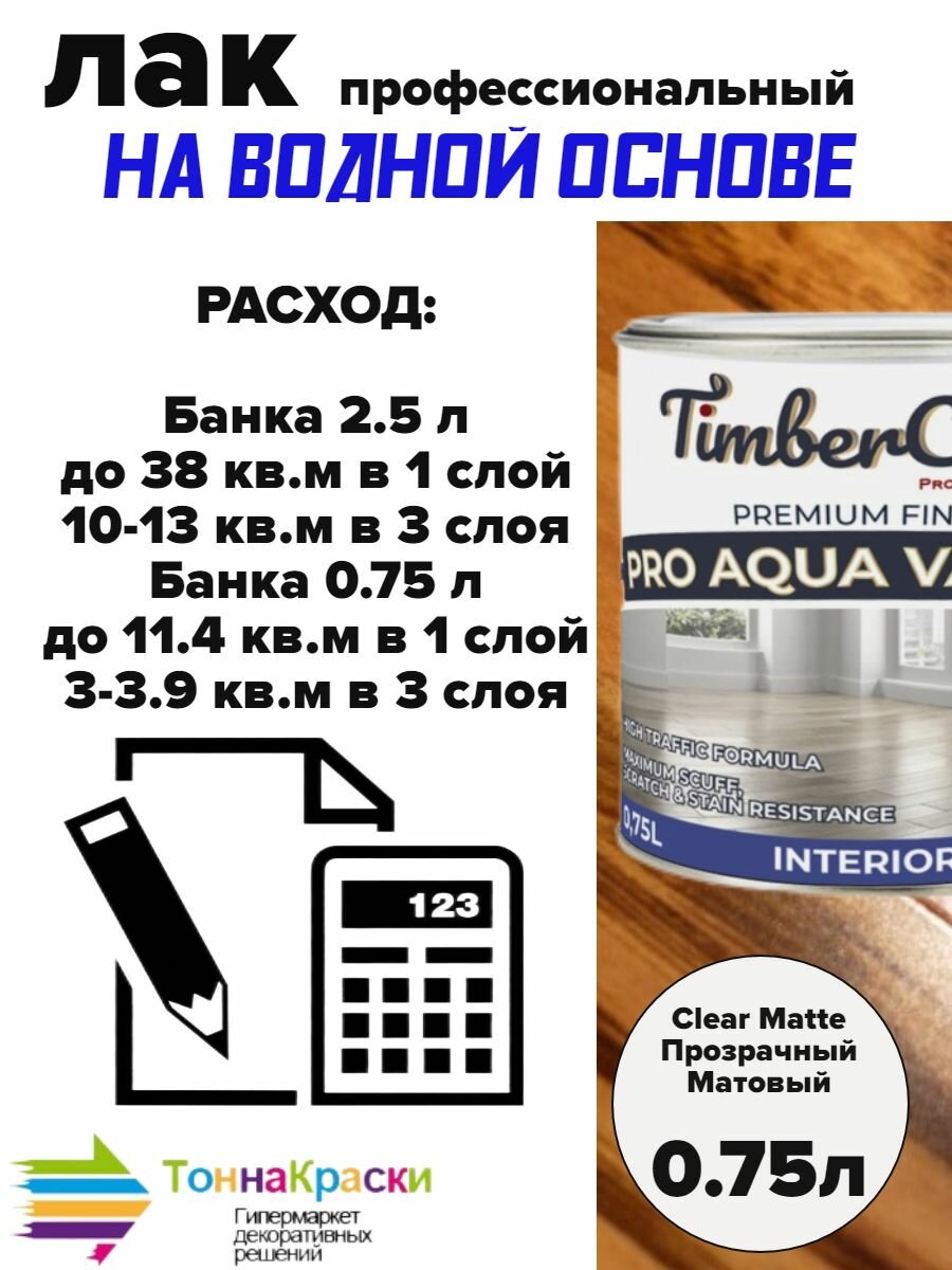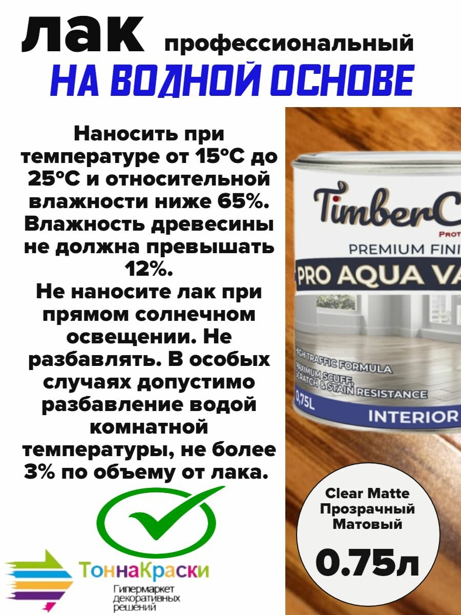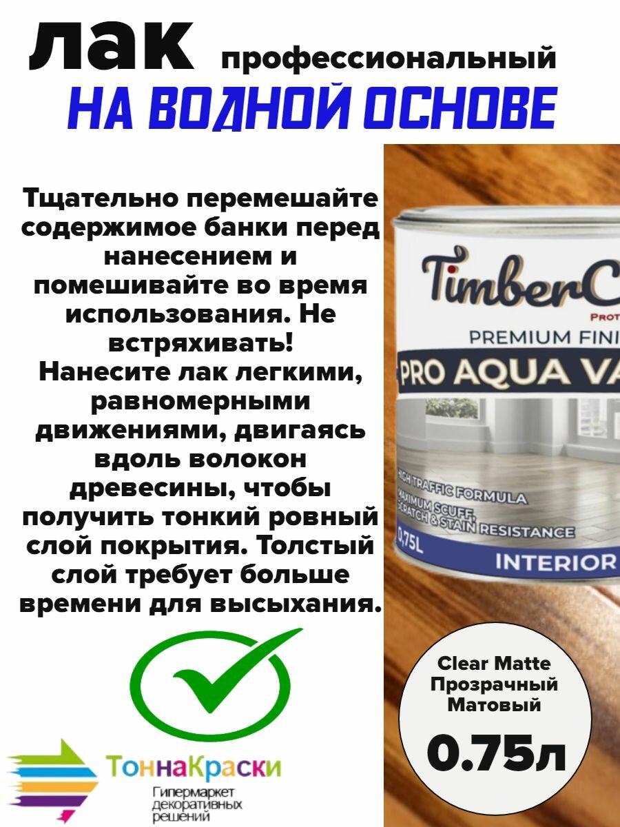 TimberCare PRO AQUA VARNISH Профессиональный износостойкий лак на водной основе Matte Прозрачный Матовый банка 0,75л интересное: