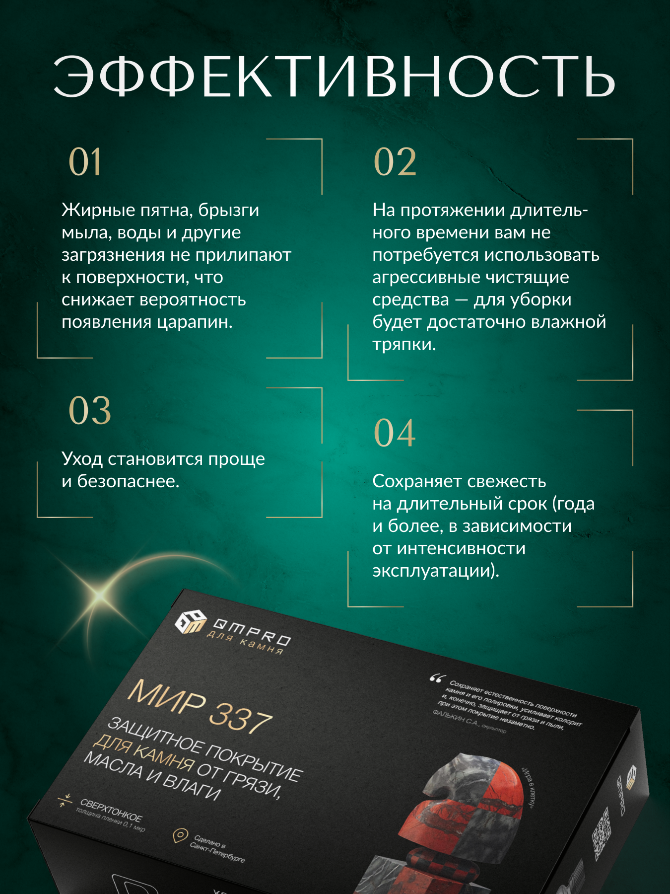 Ниже Вы можете прочитать отзывы на Защитное покрытие для камня МИР 337, ознакомится с подробными характеристиками, посмотреть интересные обзоры и фотографии на Защитное покрытие для камня МИР 337.