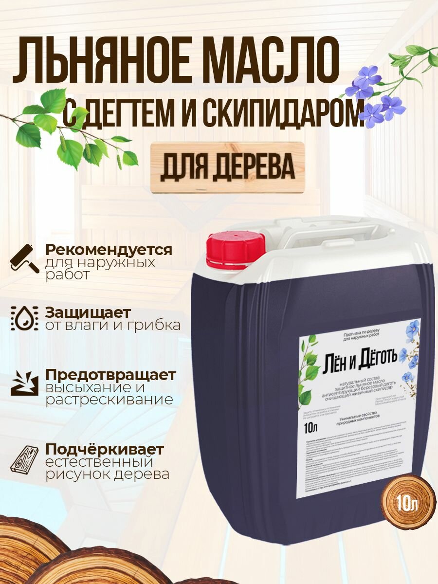 Льняное масло с дегтем берёзовым и живичным скипидаром для дерева, 10л интересное: