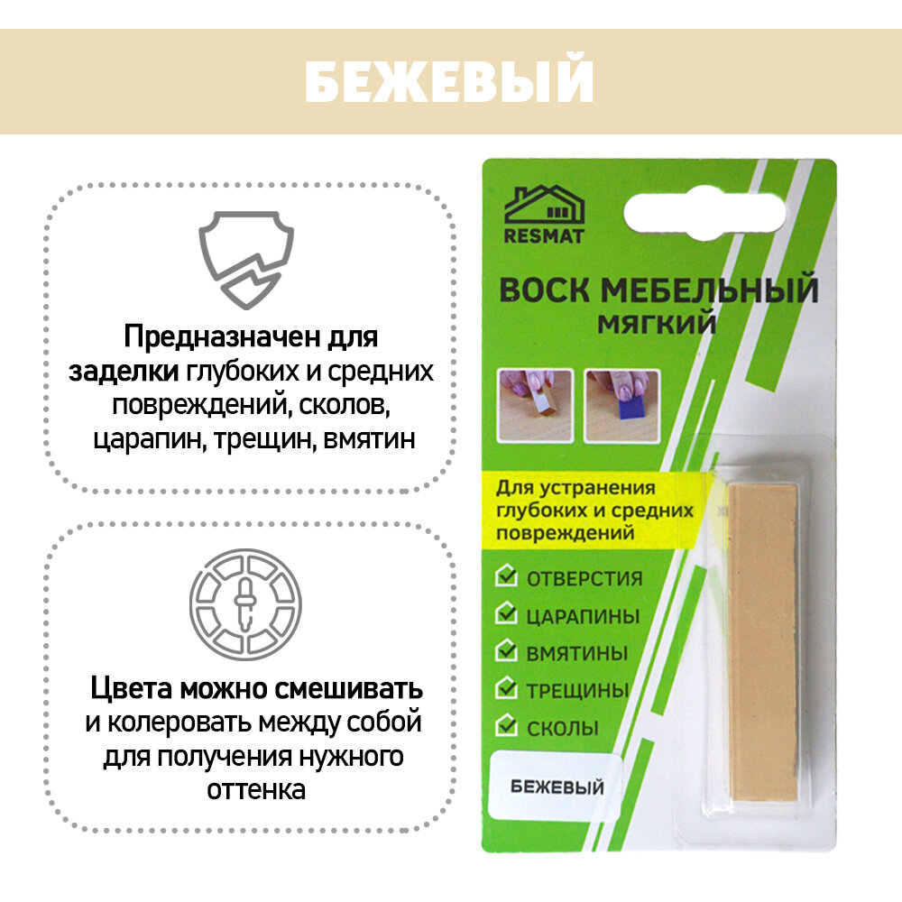 Купить Воск мягкий Resmat для реставрации мебели и напольного покрытия, 1 шт, цвет - бежевый