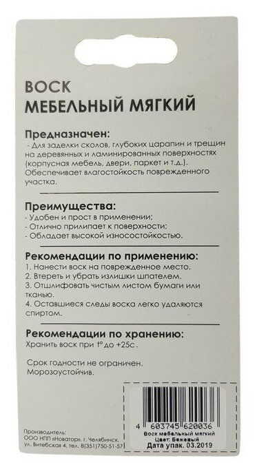 Воск мягкий для реставрации мебели и напольного покрытия/ 1 шт/ цвет - белый