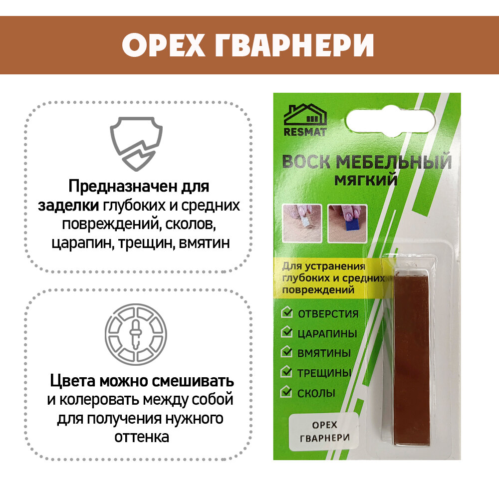 Воск мебельный Resmat для реставрации мебели и ламината 1 шт. в упаковке, "Орех Итальянский"