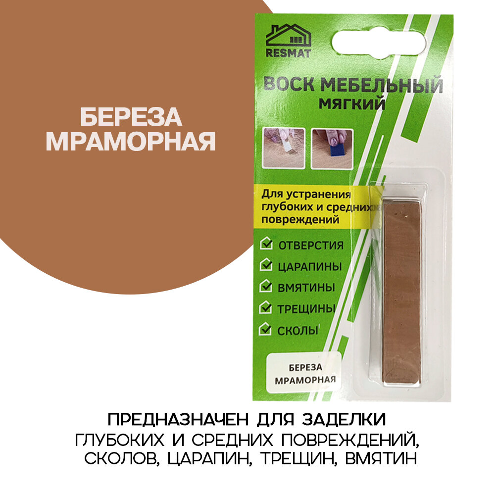 Купить Воск мебельный Resmat для реставрации мебели и ламината 1 шт. в упаковке, "Береза Мраморная"