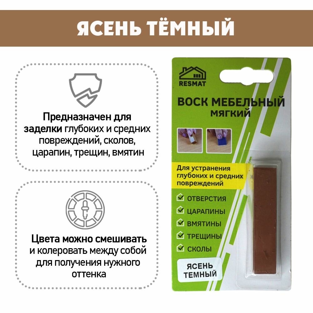 Воск мебельный Resmat для реставрации мебели и ламината 1 шт. в упаковке, "Ясень Темный"