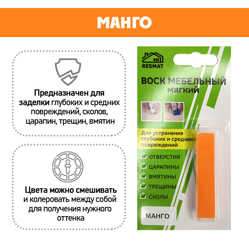 Купить Воск мебельный Resmat для реставрации мебели и ламината 1 шт. в упаковке, "Манго"