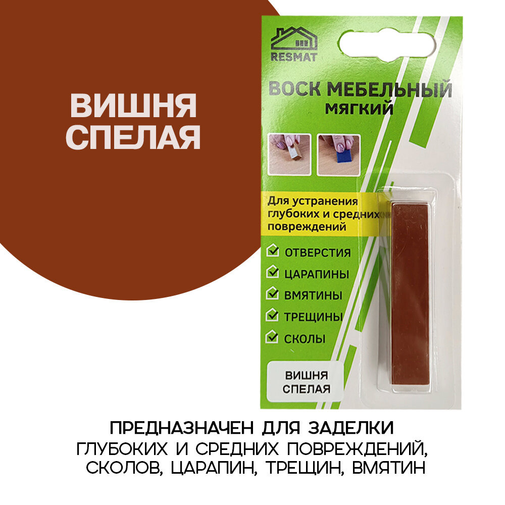 Воск мягкий Resmat для реставрации мебели и напольного покрытия, 5 шт, цвет - Вишня Спелая