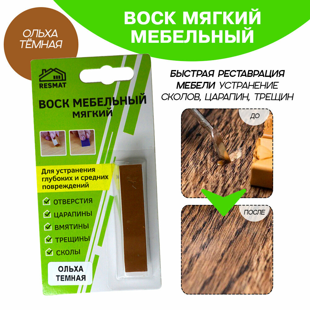 Купить Воск мебельный Resmat для реставрации мебели и ламината 1 шт. в упаковке, "Ольха Темная"