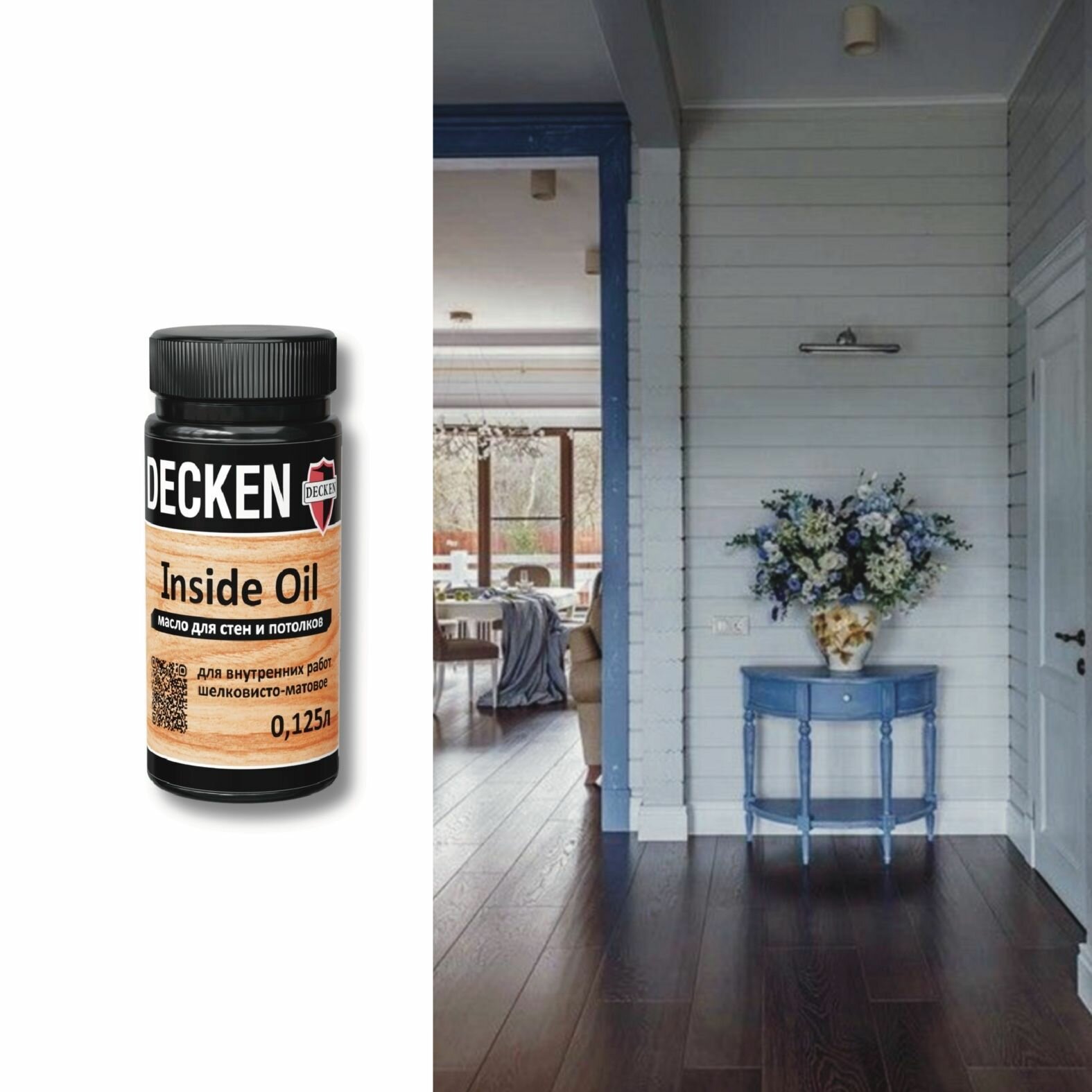 Масло для дерева, DECKEN, Inside Oil, для стен и потолков, бесцветное, 0,125 л