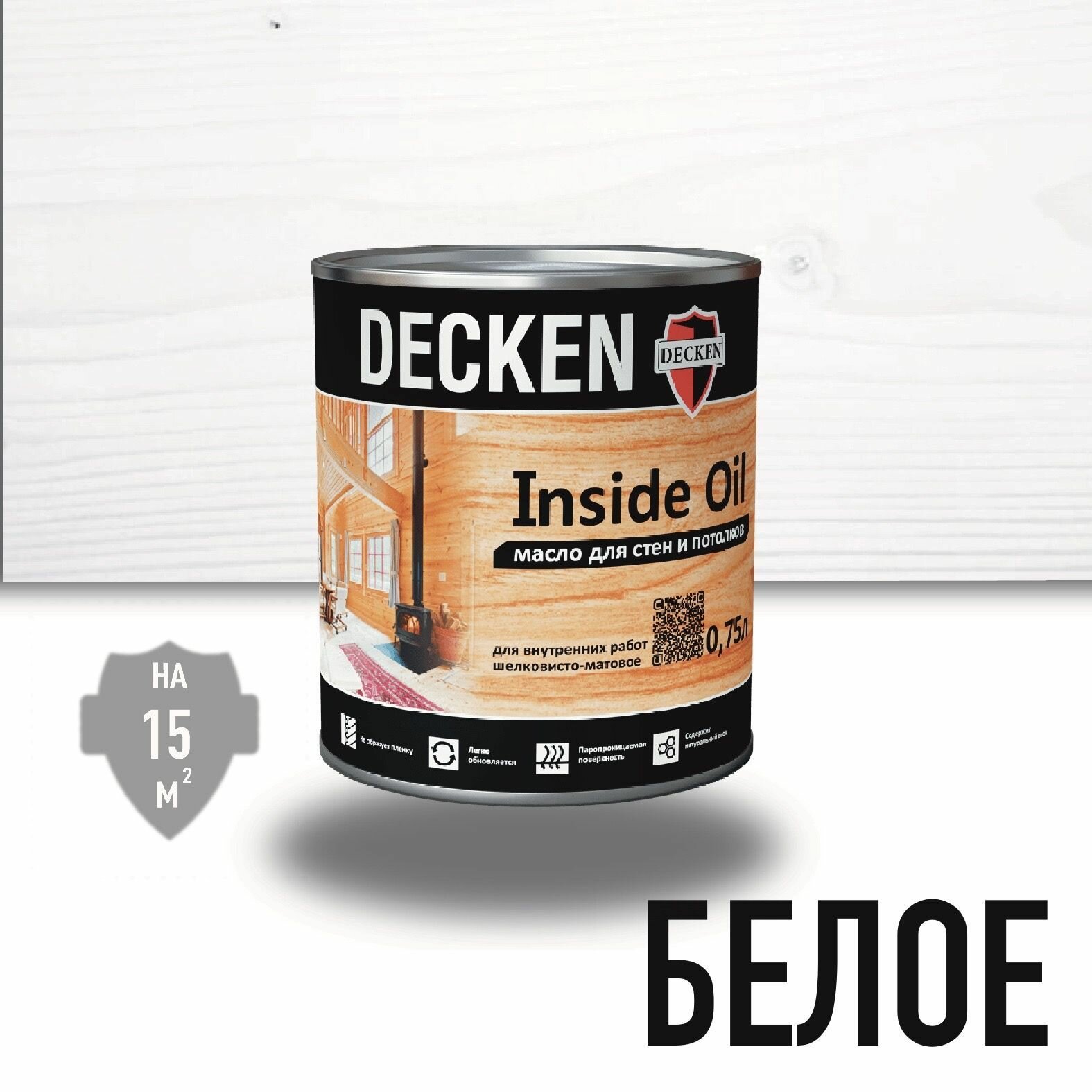 Масло для дерева, DECKEN, Inside Oil, для стен и потолков, белое, 0,125л