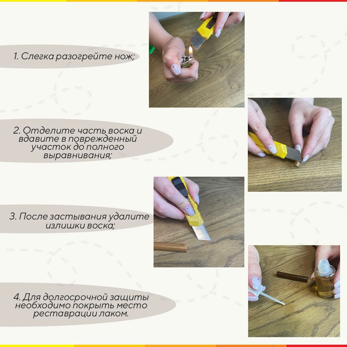 СохранитьМелок восковый реставрационный для ремонта сколов на мебели, паркете, ламинате, цвет Королевский клен интересное: