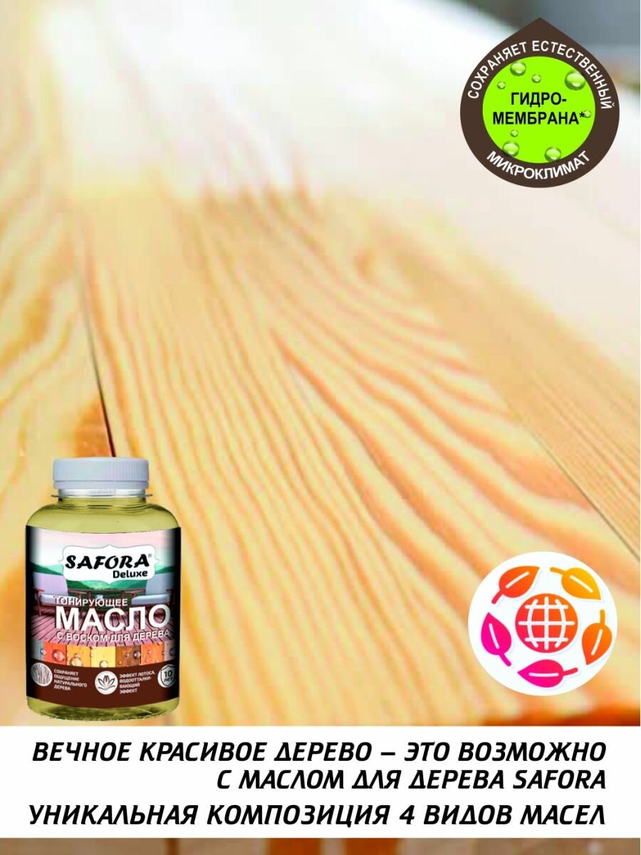 Масло для дерева с воском, сосна SAFORA 1л для наружных и внутренних работ