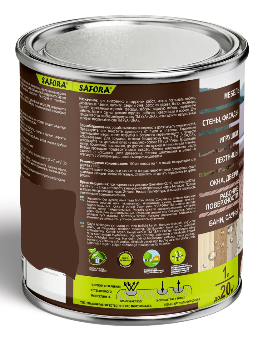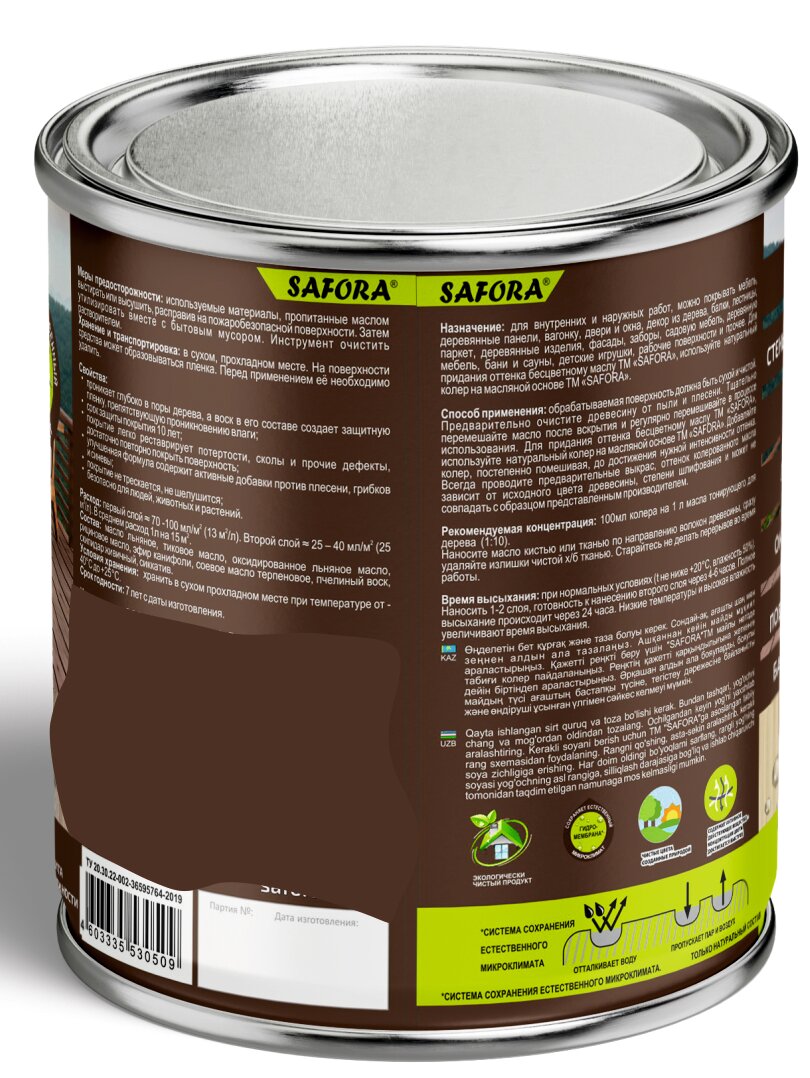 Масло для дерева с воском, темный орех 1 л SAFORA для наружных и внутренних работ