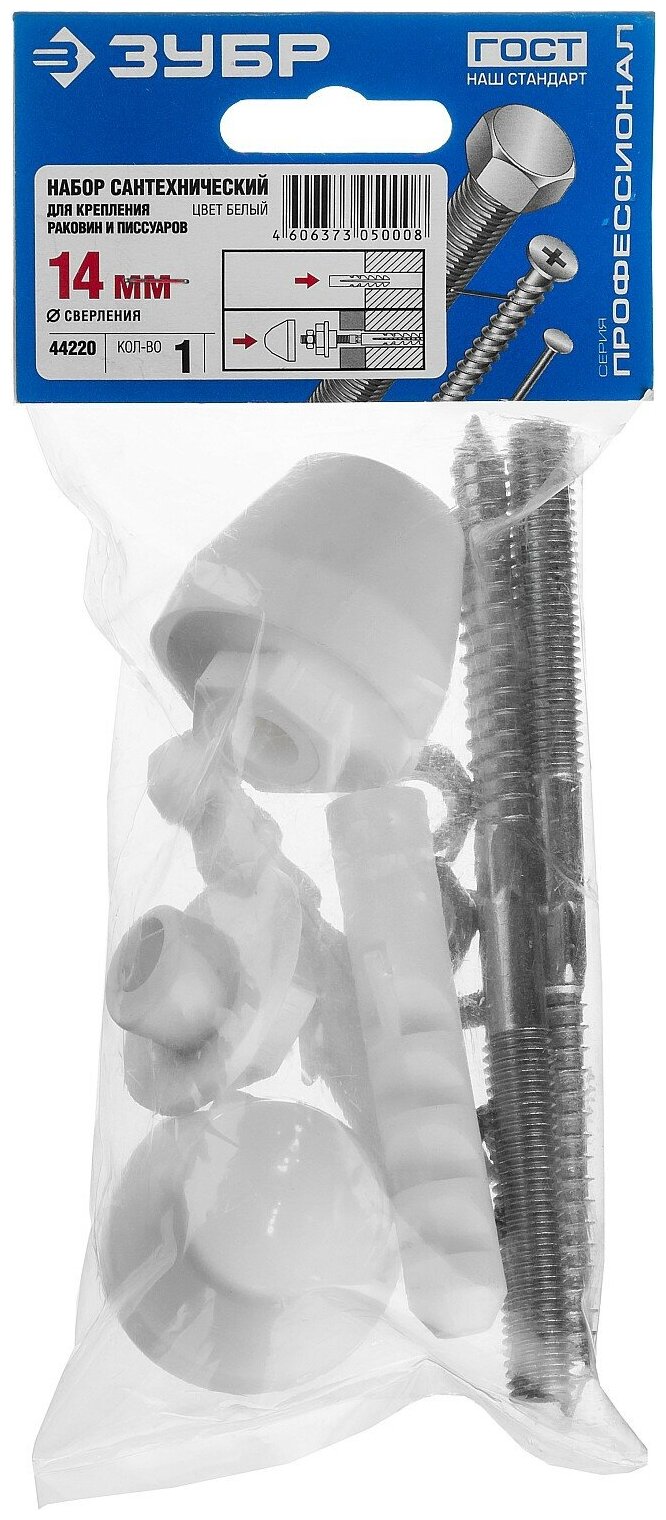 ЗУБР 14 мм, белый цвет, набор для крепления раковин и писсуаров, Профессионал (44220)