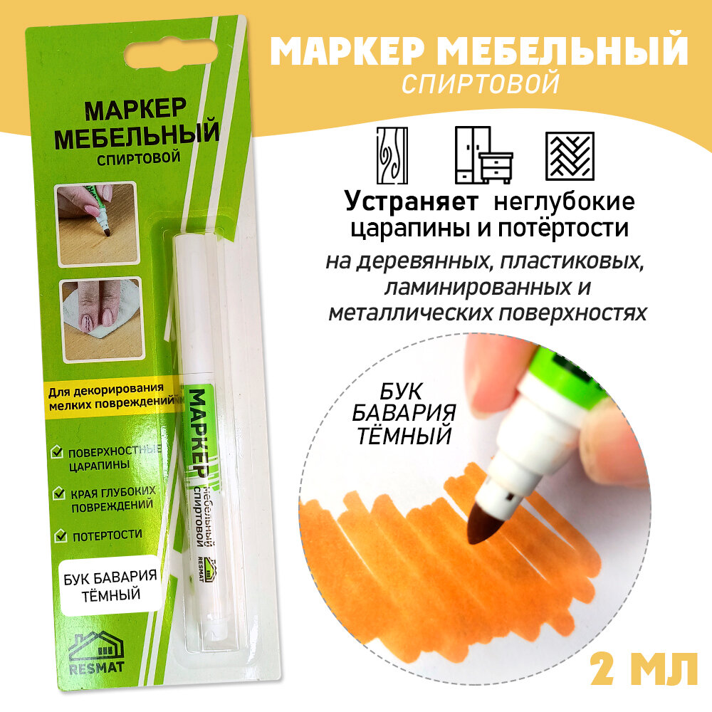 СохранитьМебельный маркер Resmat СПИРТОВОЙ, объем краски 2 мл, цвет - Бук Бавария Темный интересное: