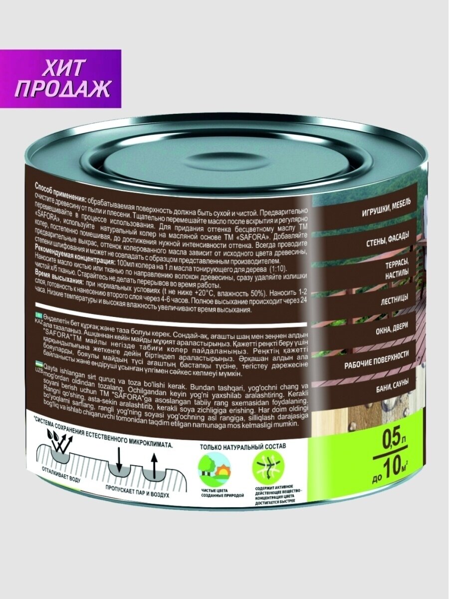 Масло для дерева с восковым покрытием Пепельный SAFORA, 500мл интересное: