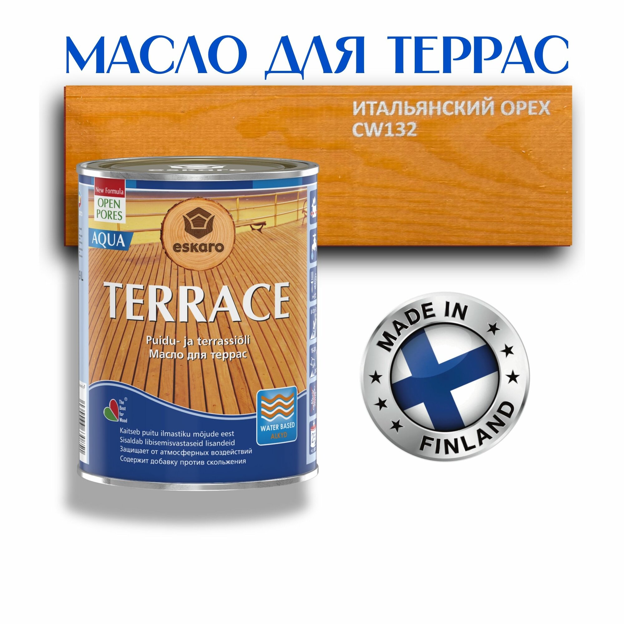 Купить Масло для дерева, для террас ESKARO Terrace Aqua, итальянский орех, 0,9л
