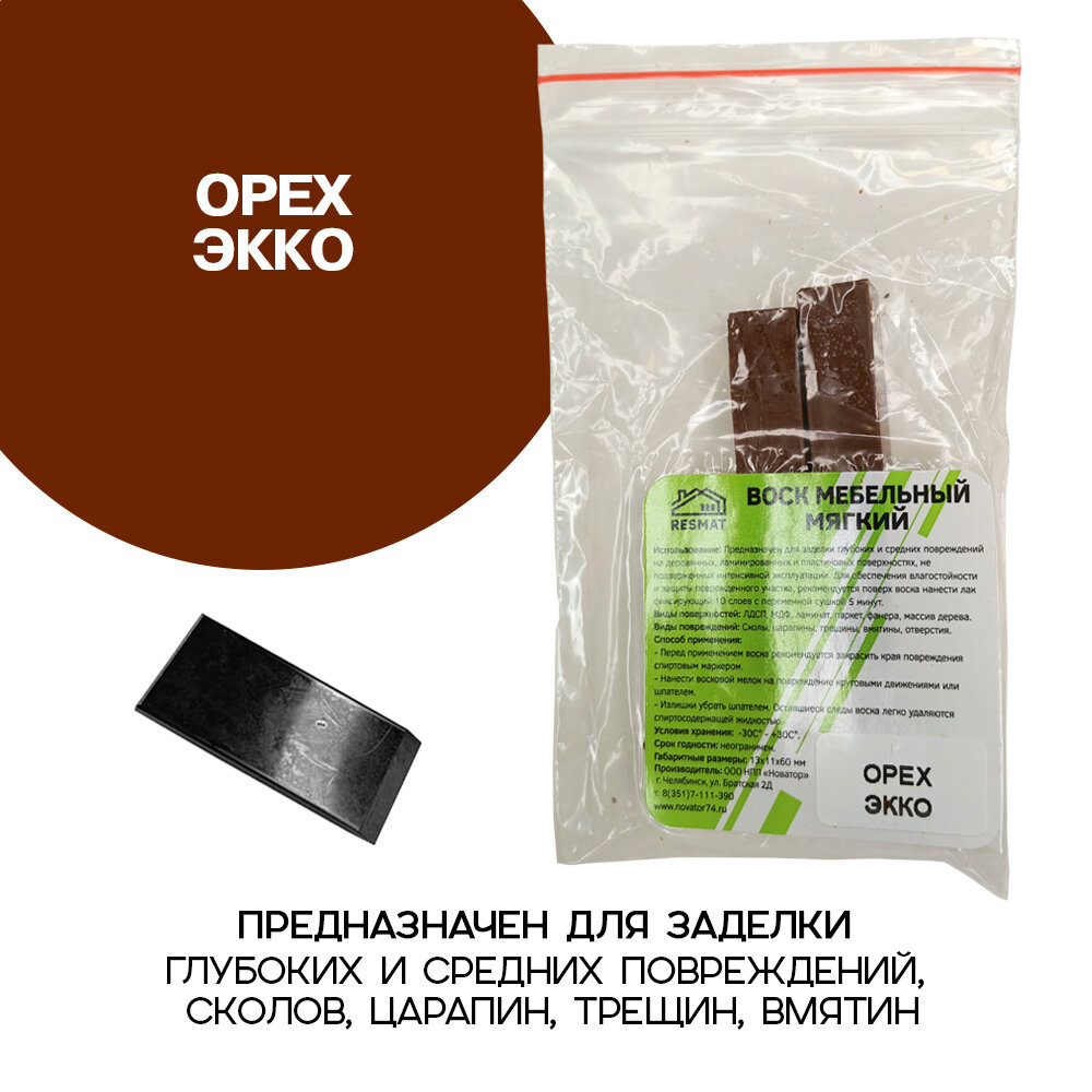 Купить Воск мебельный Resmat для реставрации мебели и ламината 2 шт. со шпателем, "Орех Экко"