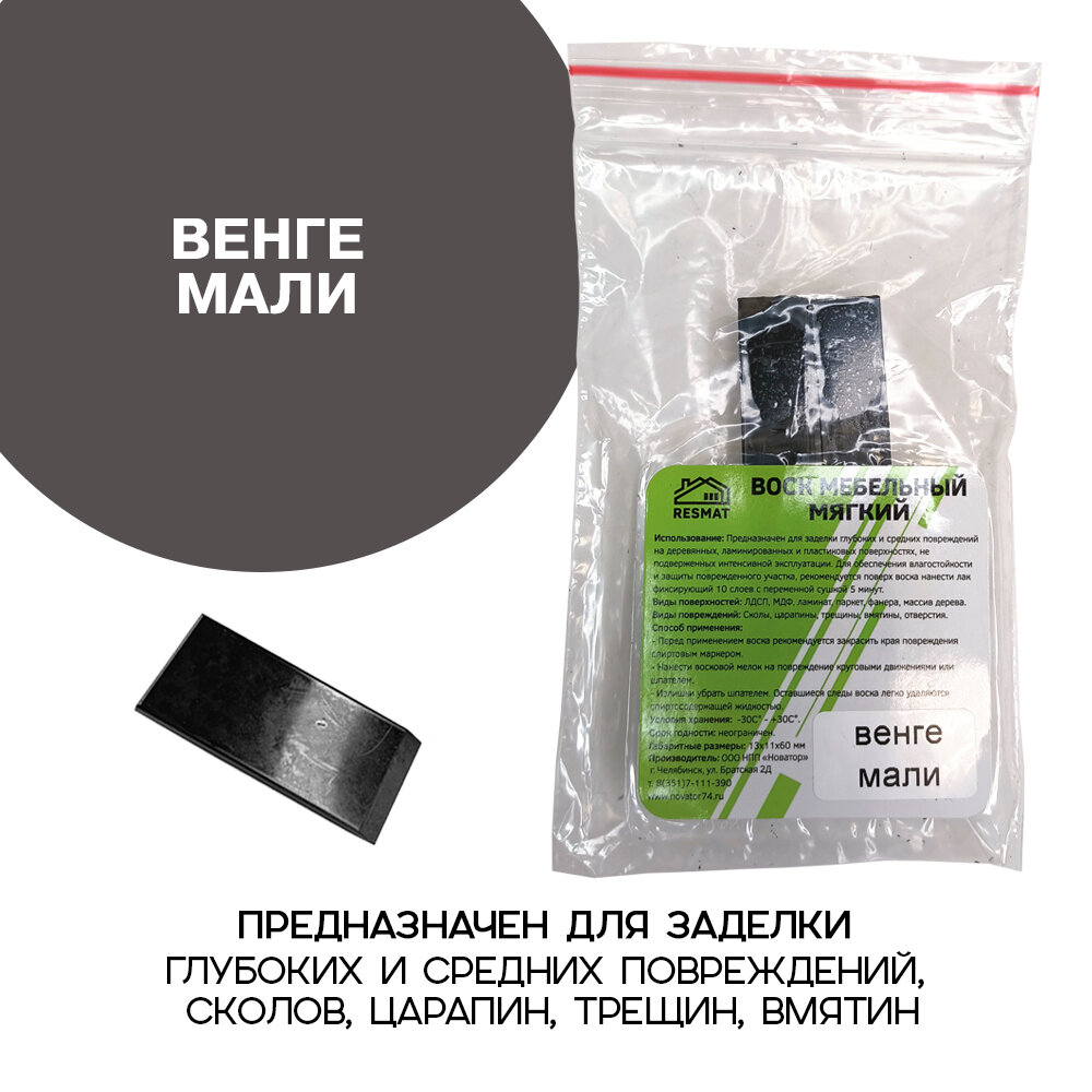 Купить Воск мебельный Resmat для реставрации мебели и ламината 2 шт. со шпателем, "Венге Мали"