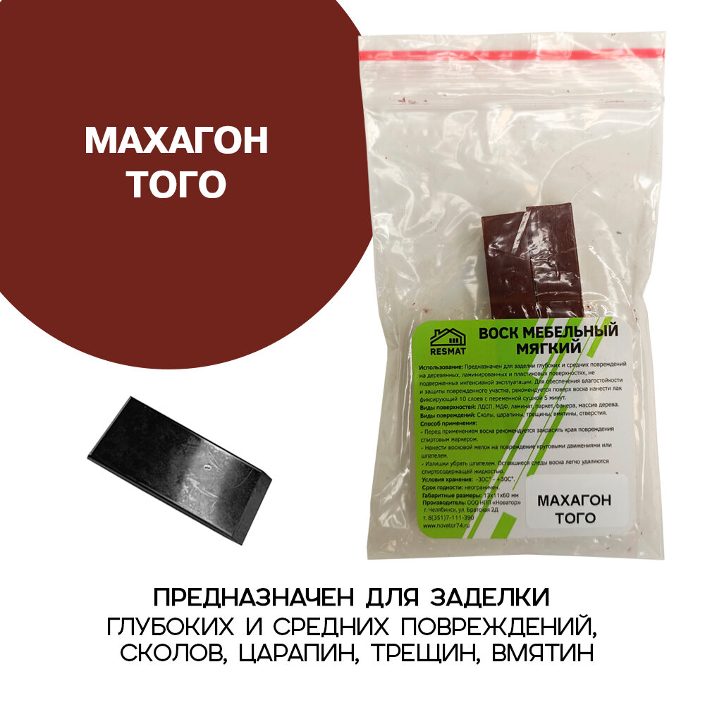 Купить Воск мебельный Resmat для реставрации мебели и ламината 2 шт. со шпателем, "Махагон Того"