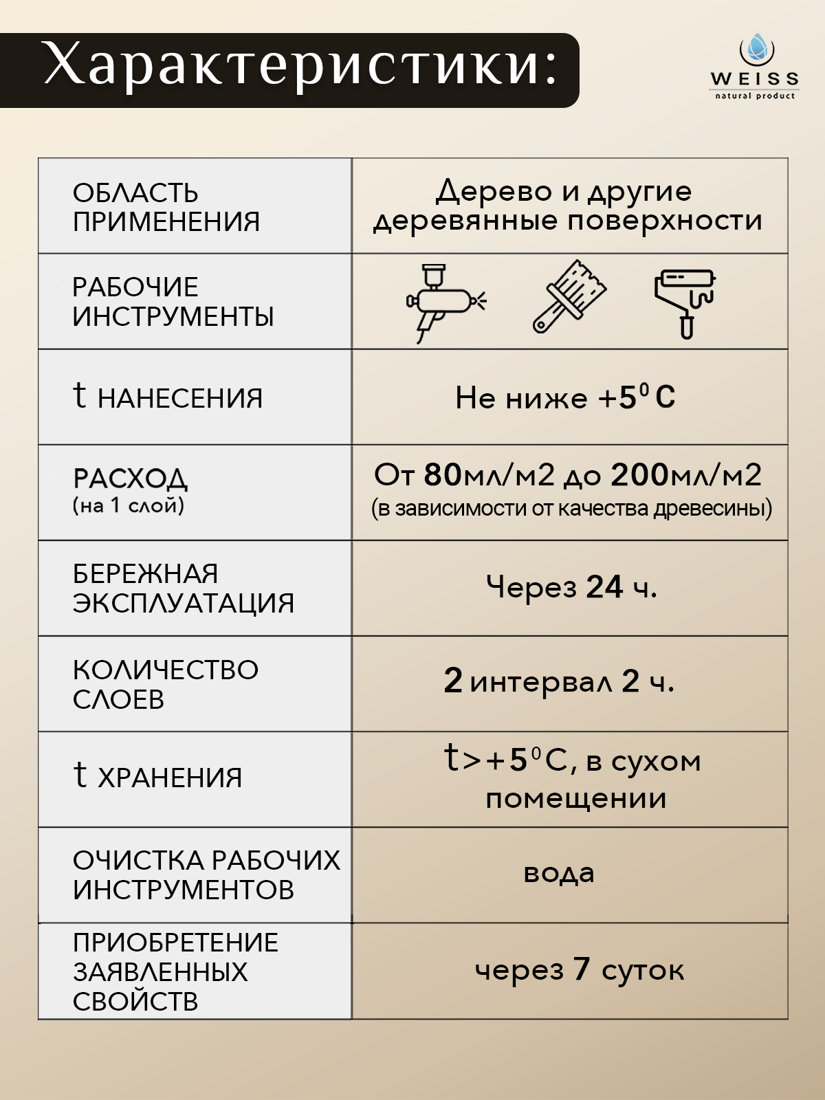 Масло WEISS Natural Product 800ml, для дерева, кремовый цвет, матовая