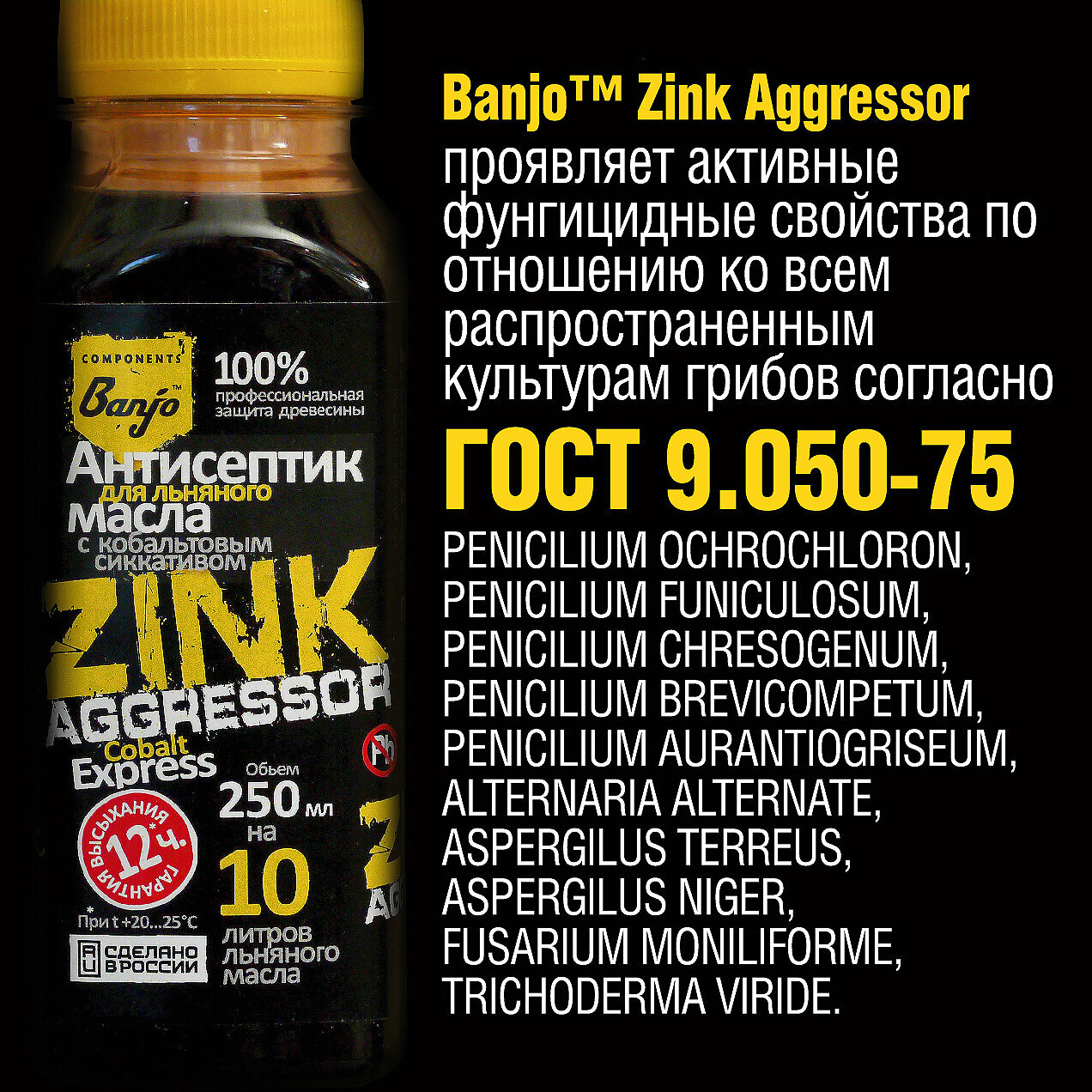 Антисептик для дерева Zink Aggressor с сиккативом 250 мл (вводится в льняное масло) интересное:
