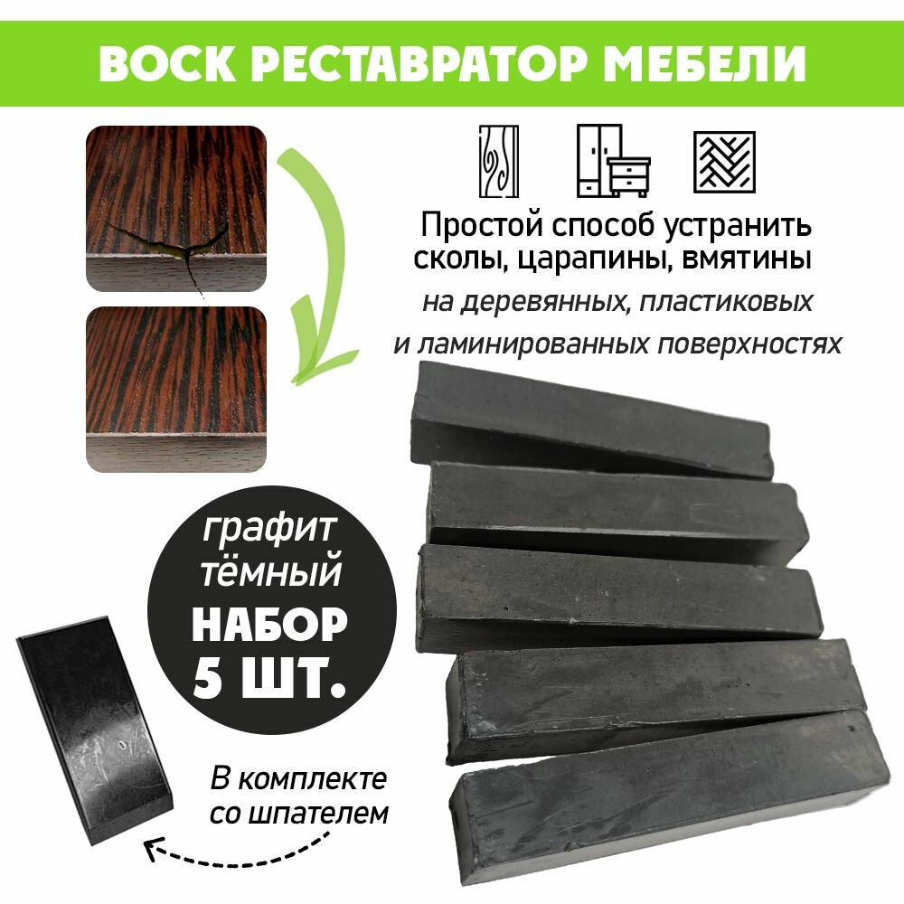 Воск мягкий для реставрации мебели и напольного покрытия/ 5 шт/ цвет - Графит Тёмный интересное: