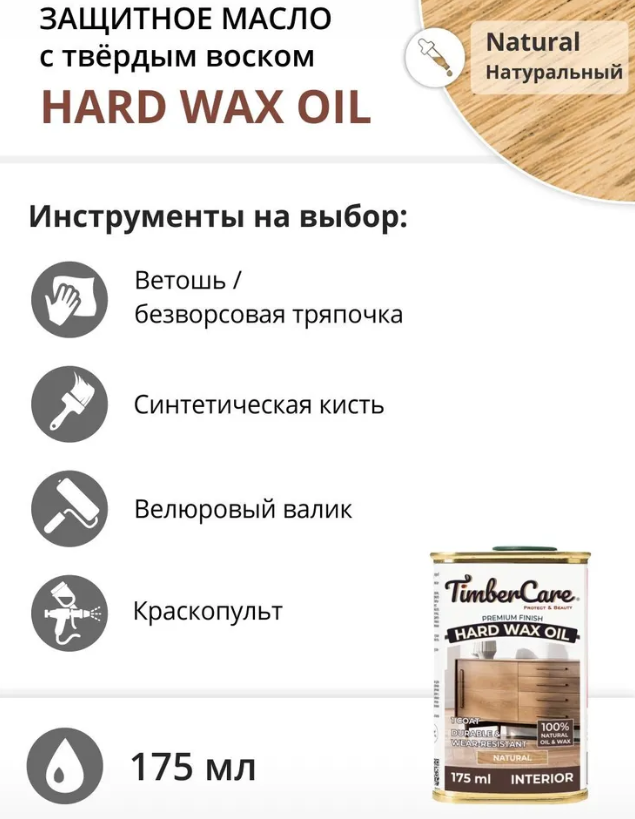 Купить Защитное масло с твердым воском TimberCare Hard Wax Oil, Нейтральный/ Natural 0.175 л