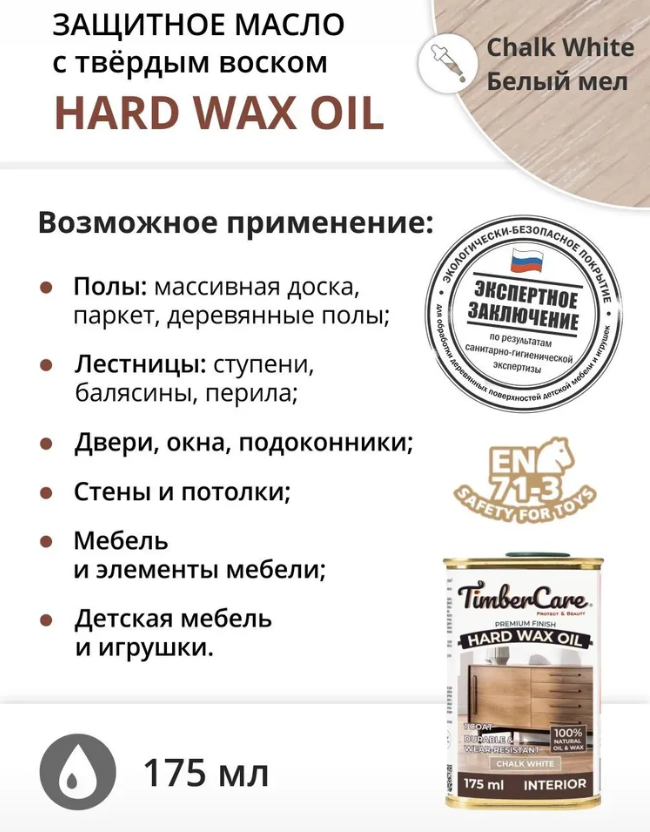Купить Защитное масло с твердым воском TimberCare Hard Wax Oil, Белый мел/ Chalk White 0.175 л