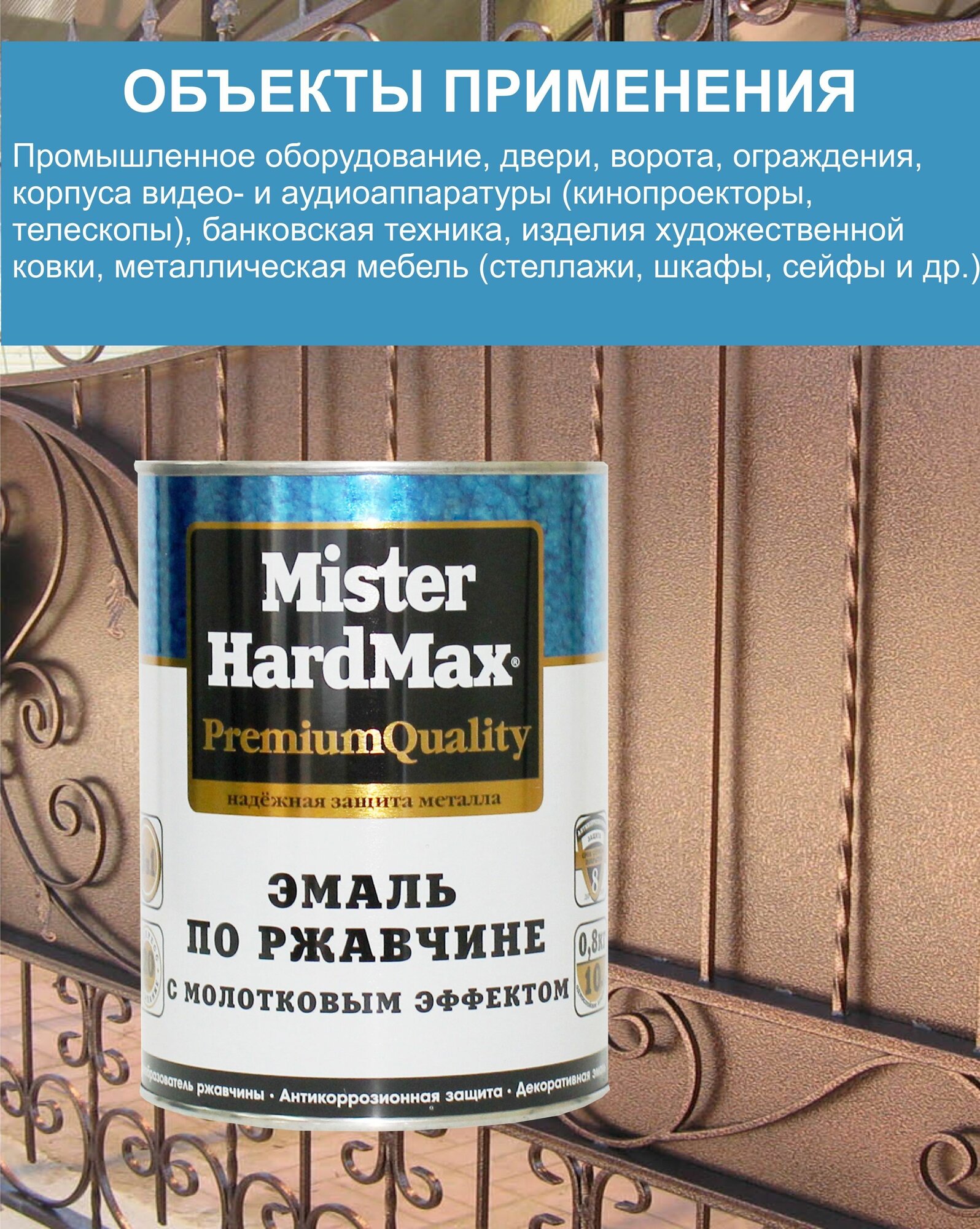 HardMax Эмаль молотковая 3 в 1 краска по металлу, по ржавчине , глянцевое покрытие, янтарная, 0.8 кг интересное: