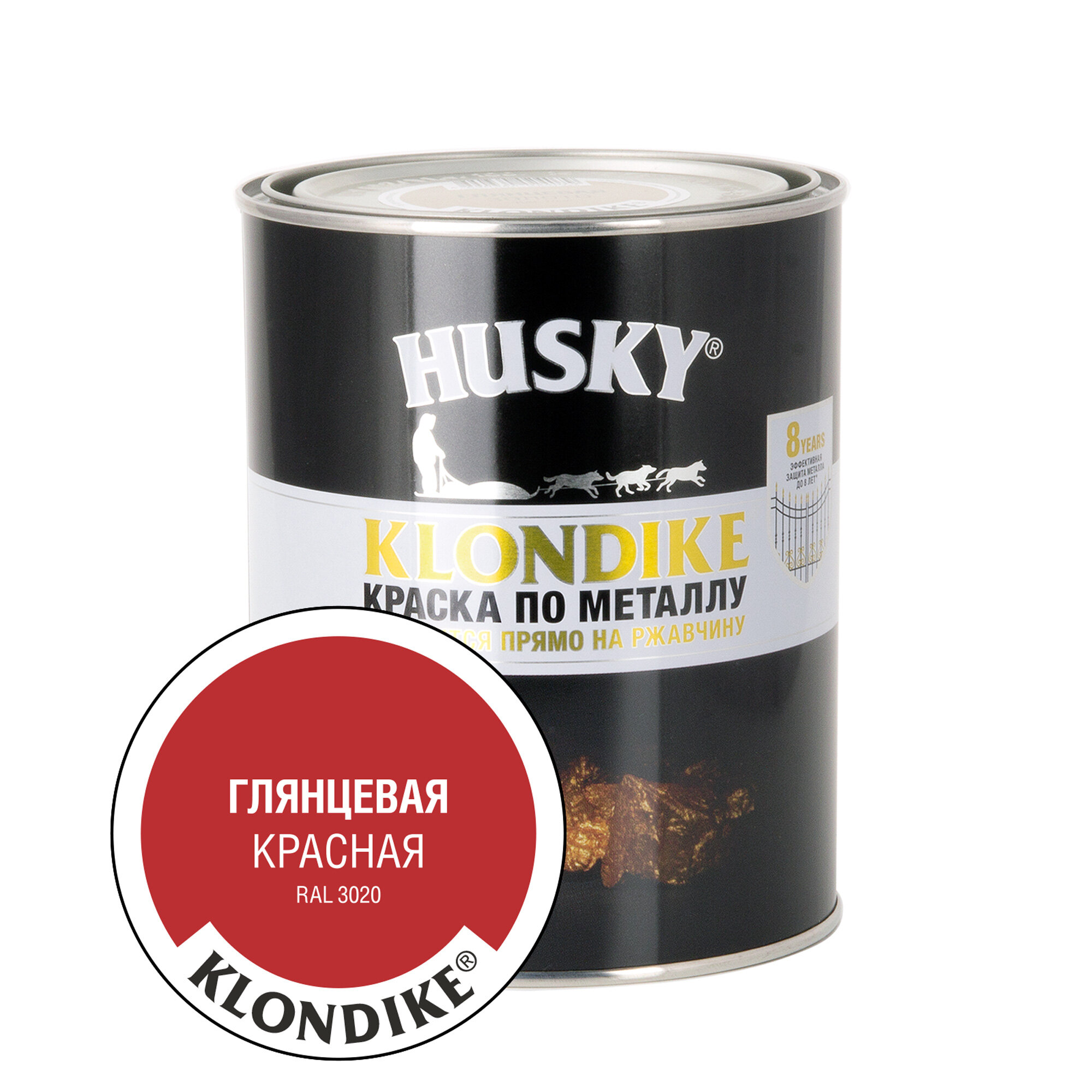 Купить HUSKY KLONDIKE Грунт-эмаль 3 в 1, краска по металлу глянцевая, по ржавчине, декоративная красная RAL 3020 (0,9л)