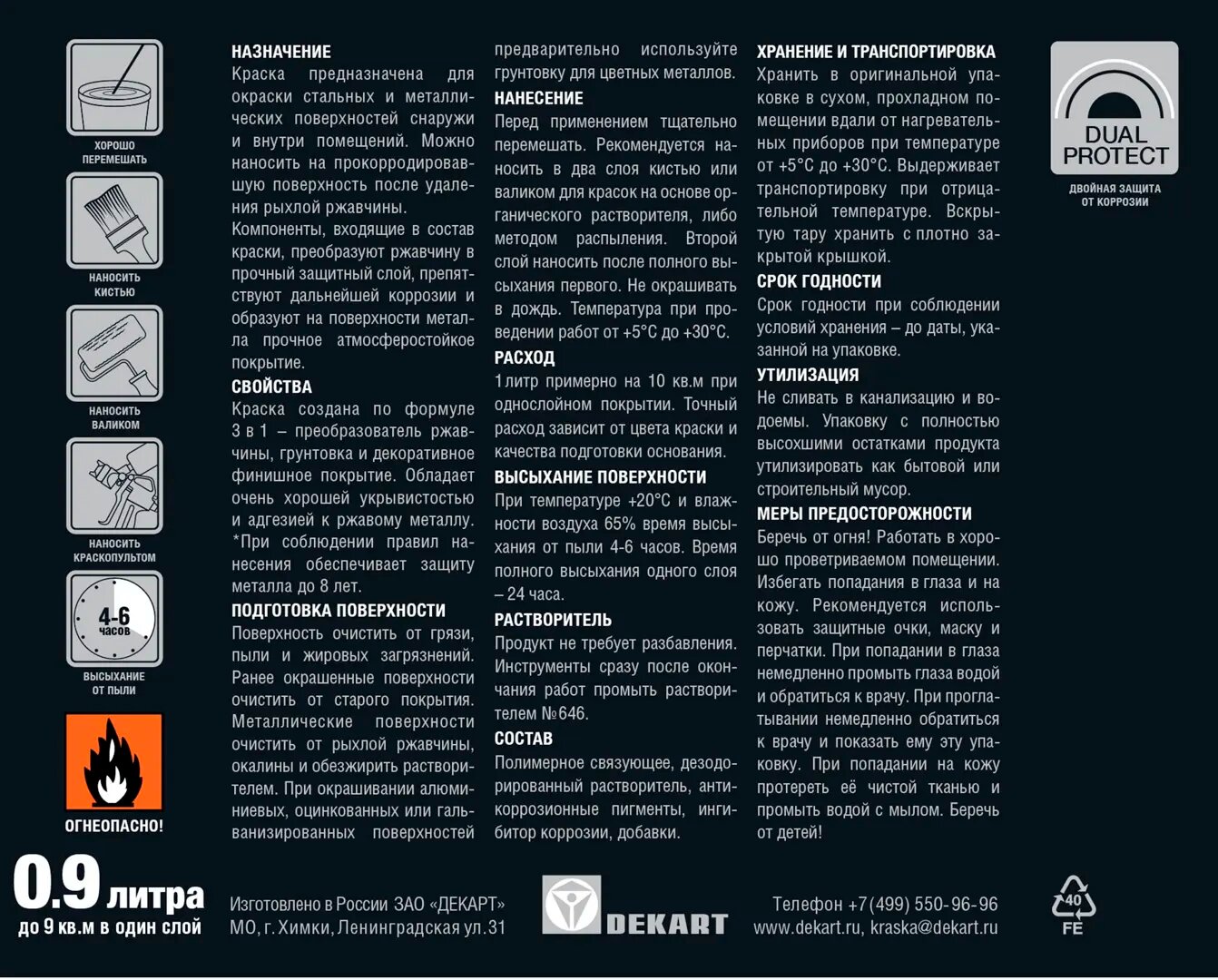 HUSKY KLONDIKE Грунт-эмаль 3 в 1, краска по металлу, по ржавчине, декоративная матовая черная RAL 9005 (0,9л)