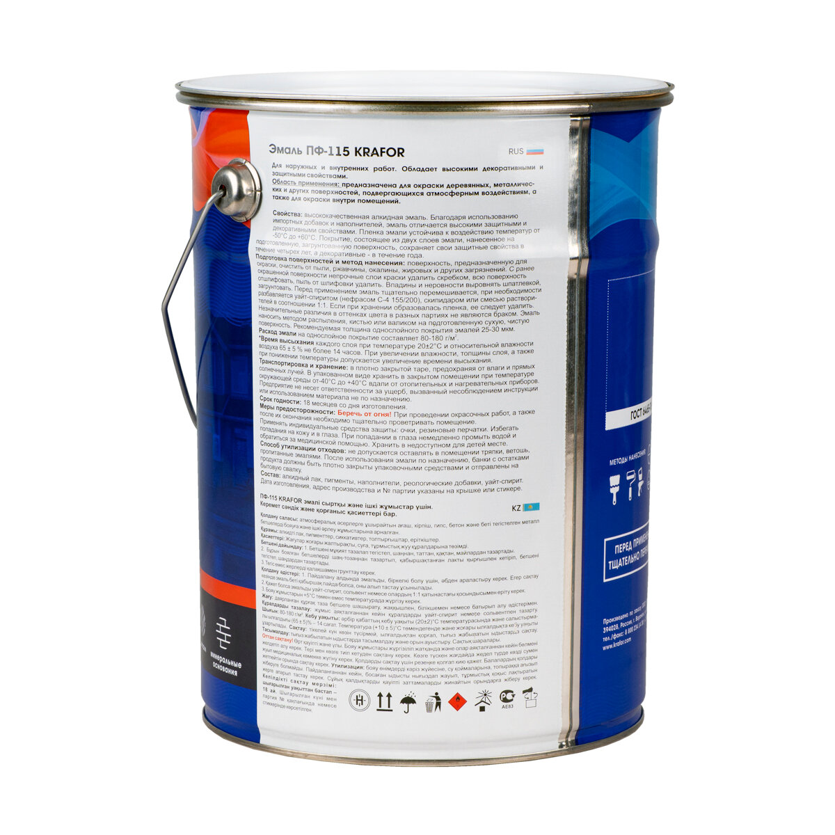 Эмаль ПФ-115 универсальная Krafor, алкидная, глянцевая, 20 кг, синяя, 1 шт жестяное ведро