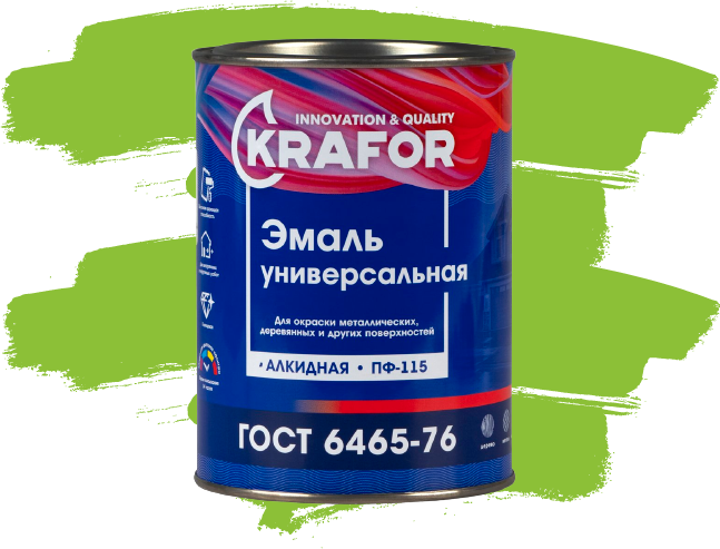 Эмаль ПФ-115 универсальная Krafor, алкидная, глянцевая, 0,8 кг, зеленое яблоко