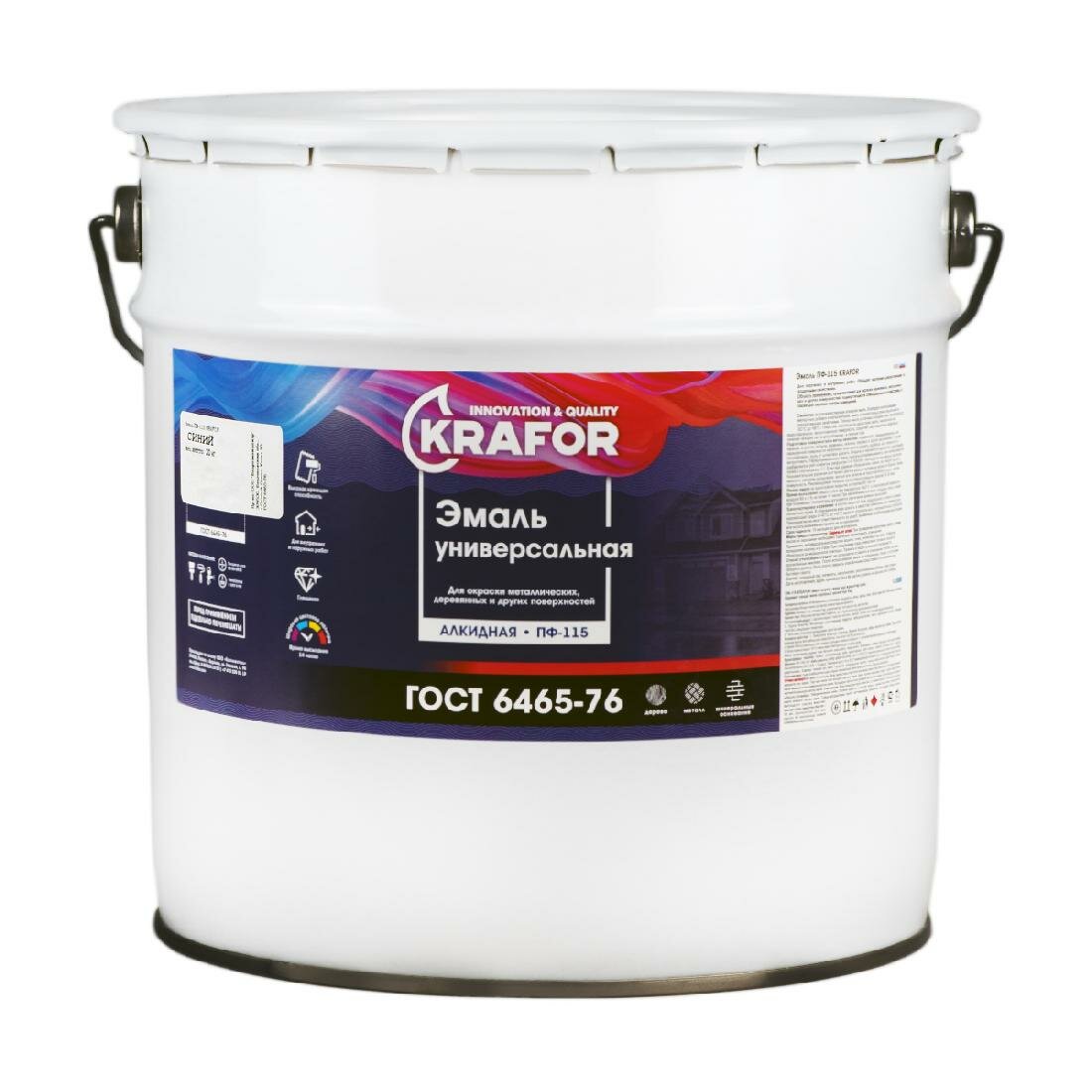 Эмаль ПФ-115 универсальная Krafor, алкидная, глянцевая, 20 кг, голубая, 1шт, жестяное ведро