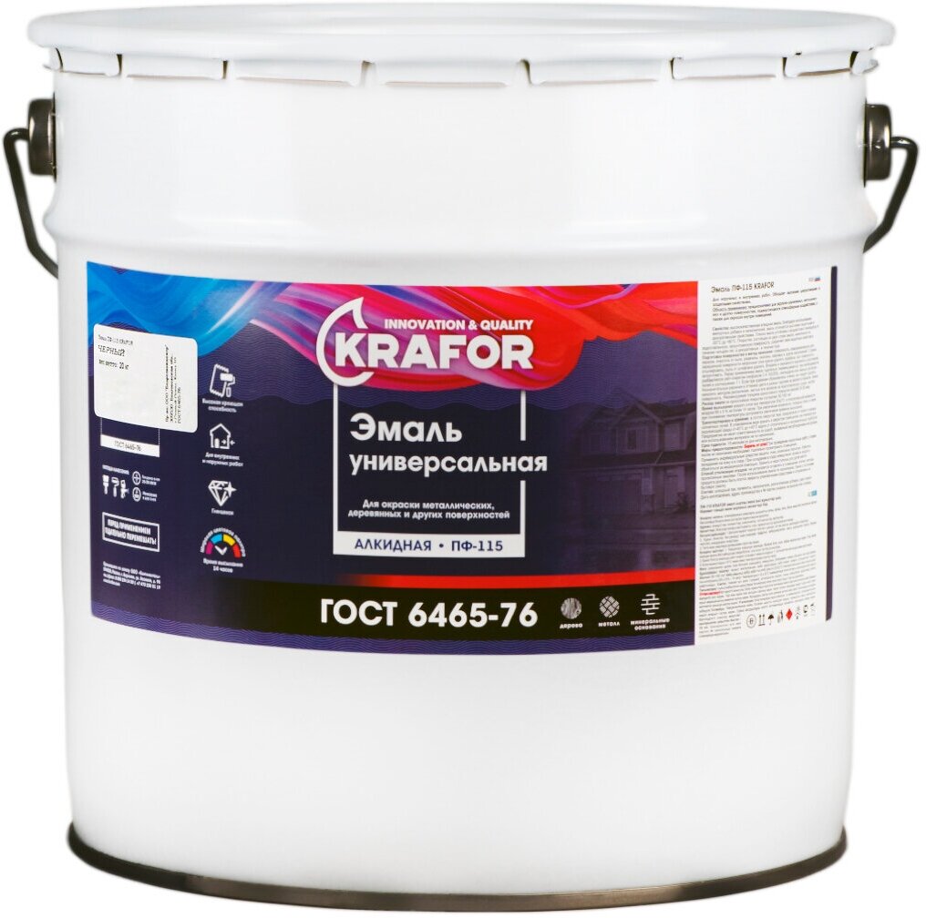 ЭМАЛЬ ПФ-115 БЕЛАЯ 20 КГ "KRAFOR", универсальная, алкидная, глянцевая
