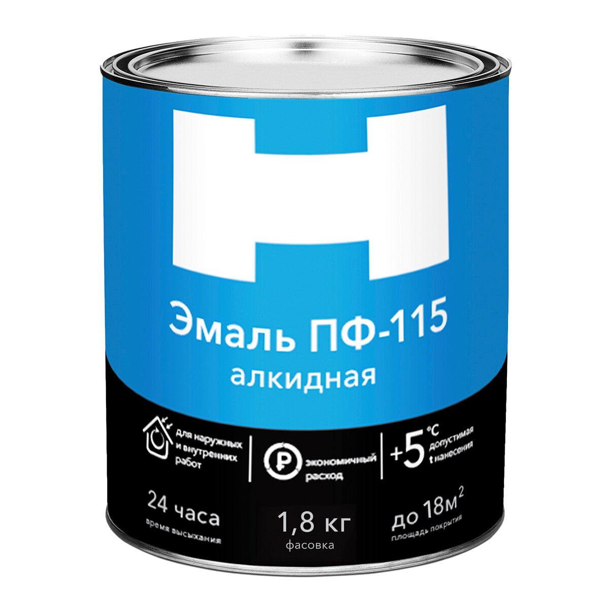 Эмаль ПФ-115 для металла и дерева H, алкидная, 1,8 кг, черная, 1шт, жестяная банка